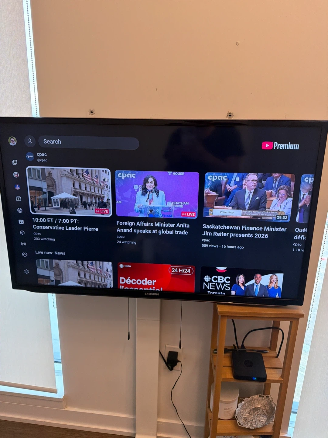 This is a Samsung smart TV, it's mounted on a stand and comes with its original remote. It's in good working condition.