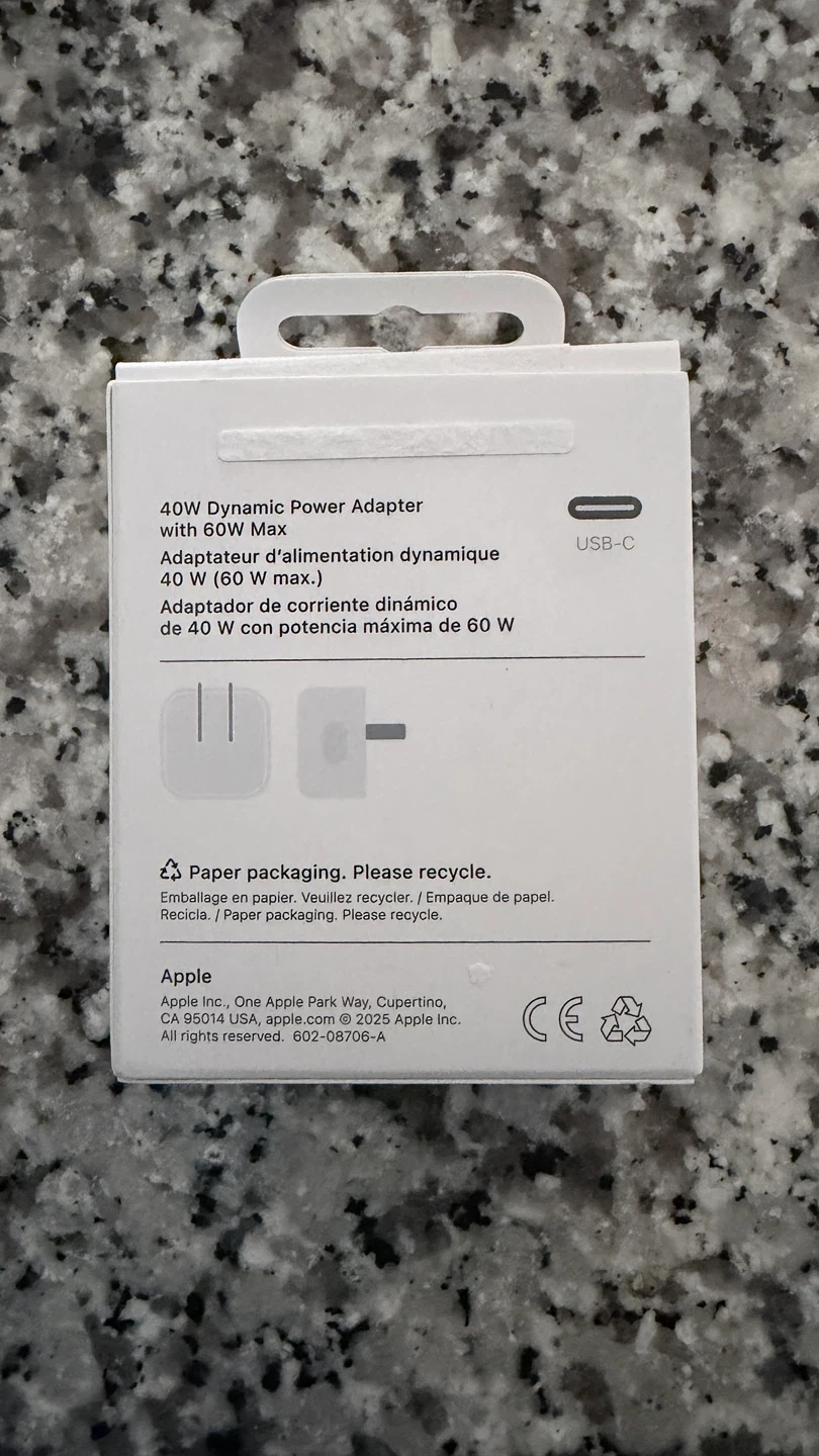 Buy & SellApple 40W Dynamic Power Adapter with 60W MaxApple 40W Dynamic Power Adapter with 60W Max$35This is an Apple 40W Dynamic Power Adapter with 60W Max. It comes with USB-C connectivity. Paper packaging. Please recycle.ConditionLike newBrandAppleWHERE TO MEETStarbucksView MapSELLERverifiedAnthonyYonge Eglinton17412 reviews0 chats·1 favorites·7 viewsSEND CHAT TO SELLERHi Anthony! I’m interested in your listing.Hi Anthony! I’m interested in your listing.Get the Karrot app to chatSign In to chat