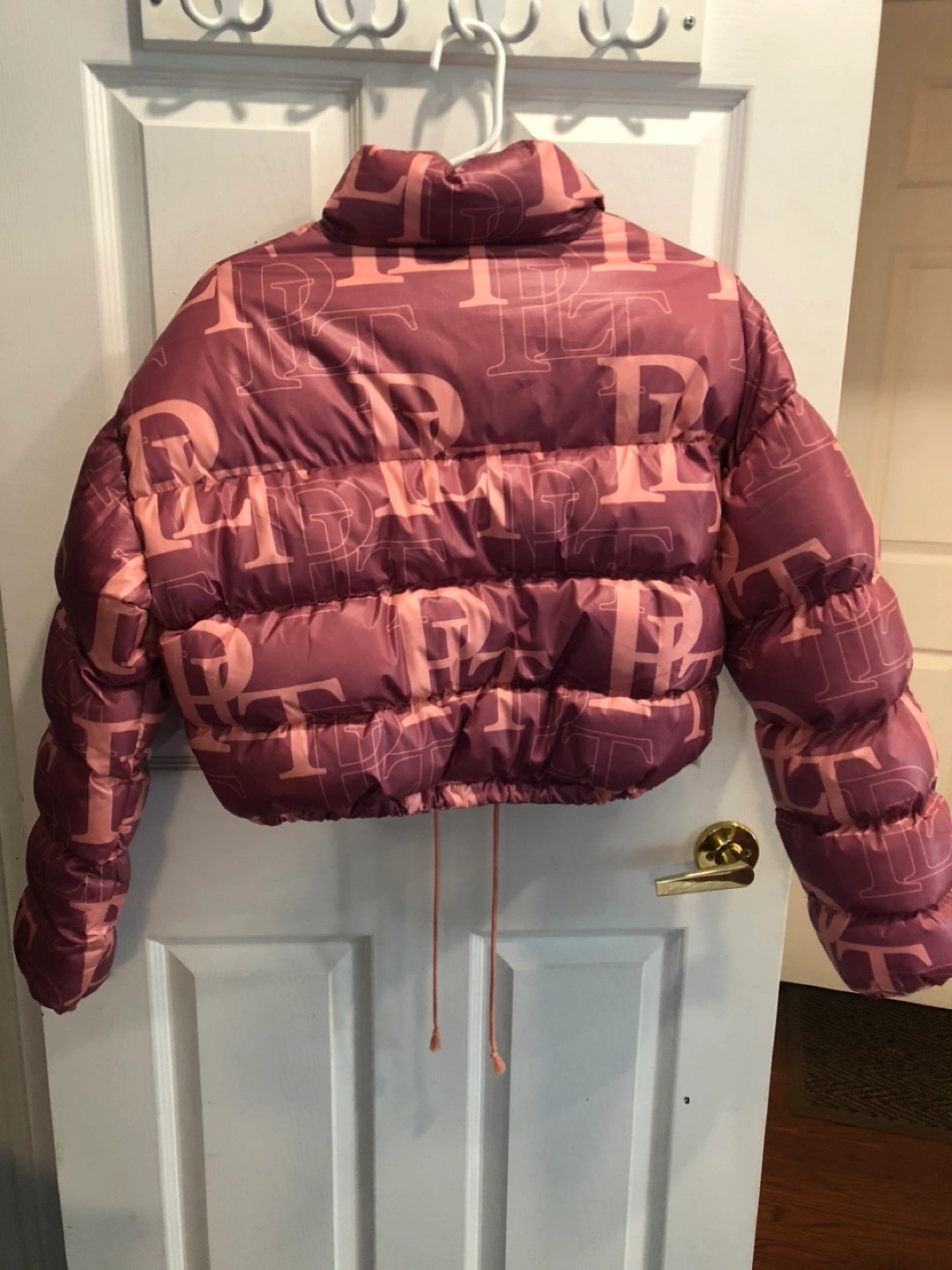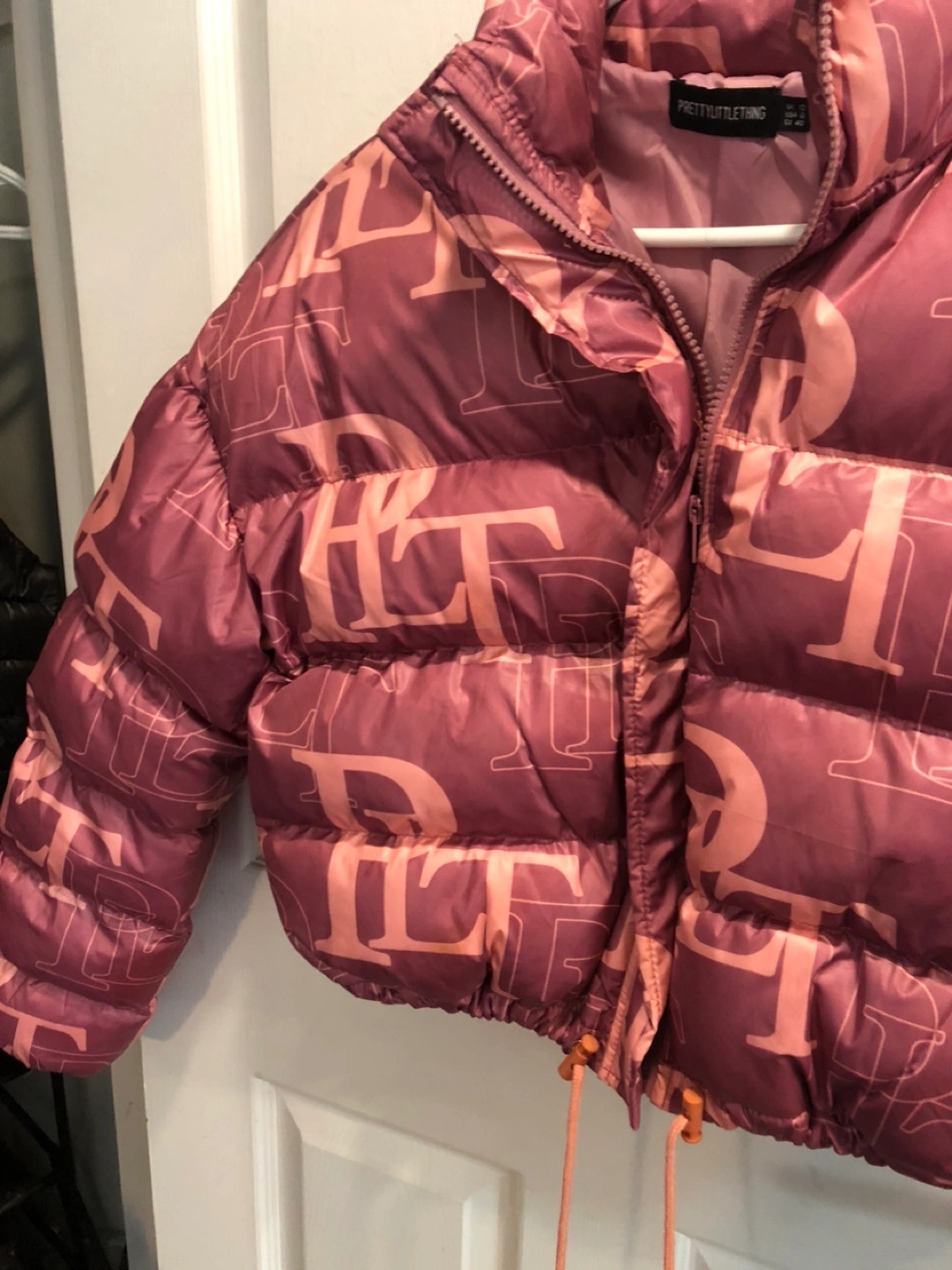 PrettyLittleThing Pink Monogram Puffer Jacket - Size 8