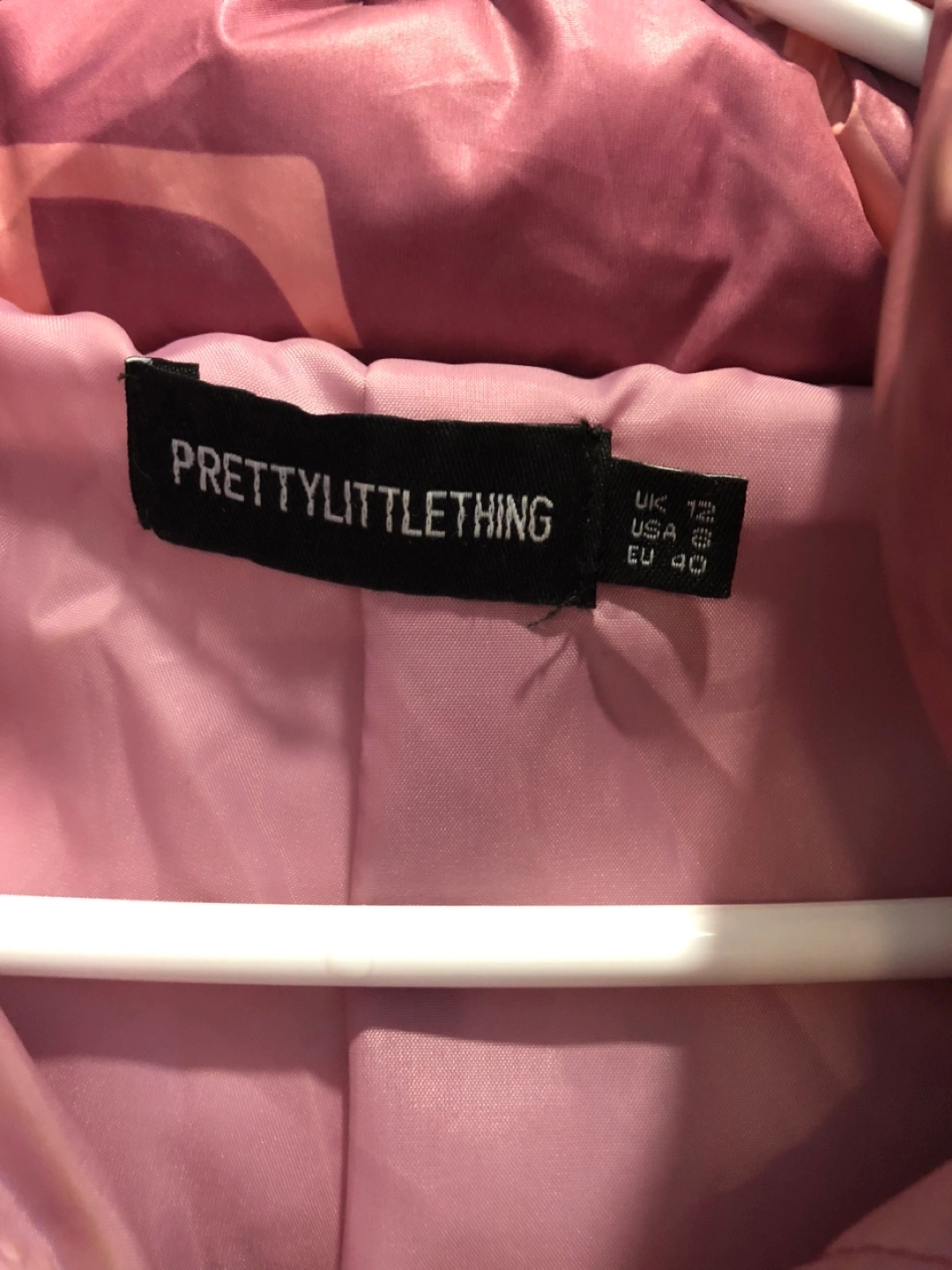 PrettyLittleThing Pink Monogram Puffer Jacket - Size 8