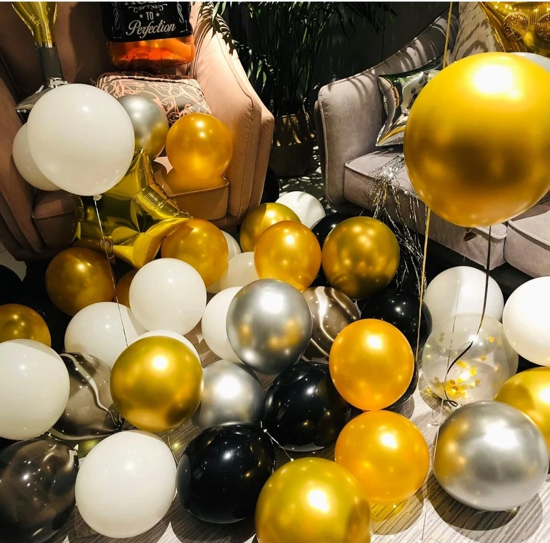BNIB 118 PCS Black Gold Happy Birthday Party Balloon Set