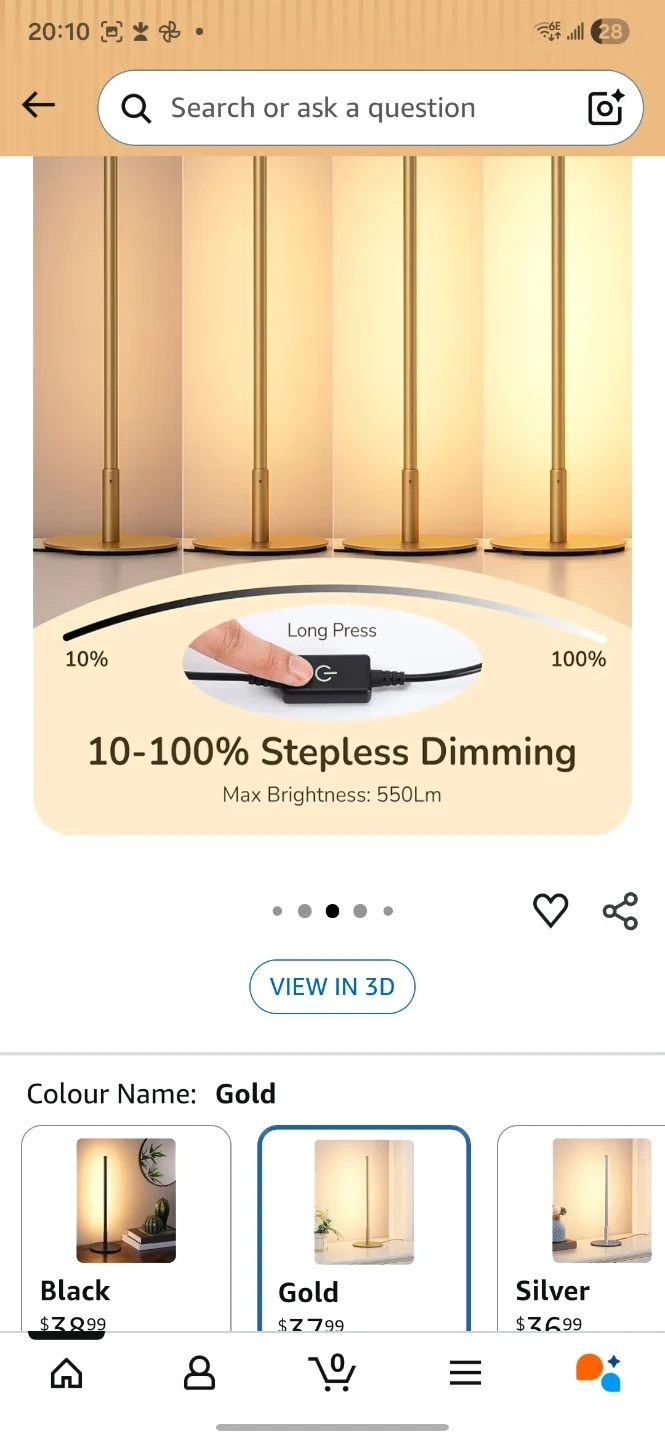 This EDISHINE LED table lamp comes in a gold finish. It's dimmable with 3 colour temperature adjustments. It's made with premium aluminum and has a silicone lampshade for glare-free lighting.