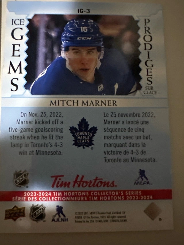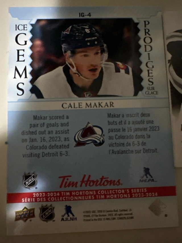 Selling 2 Upper Deck ICE GEMS cards (Cale Makar and Mitch Marner), plus one Rookie Rivalry panini card. Pick up or meet up.