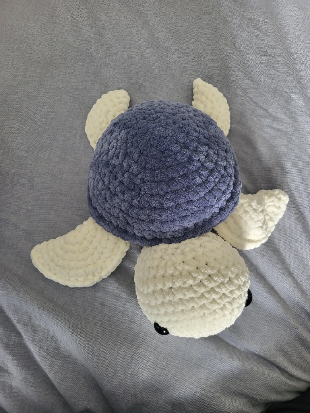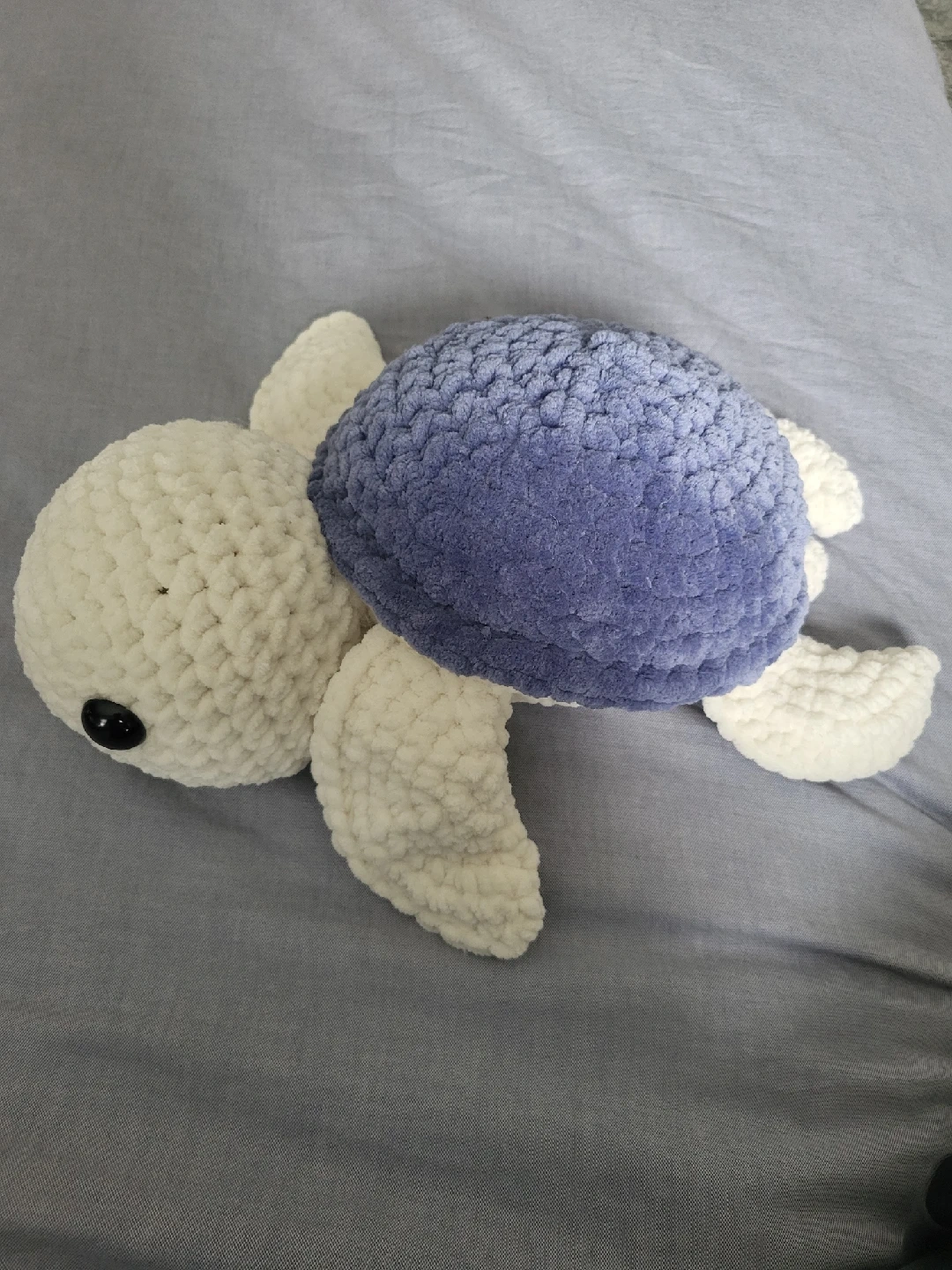 This adorable handmade crochet turtle plushie is looking for a new home! It's made with soft, cuddly yarn in a lovely blue and white colour combination. Perfect for kids or anyone who loves cute, handcrafted items