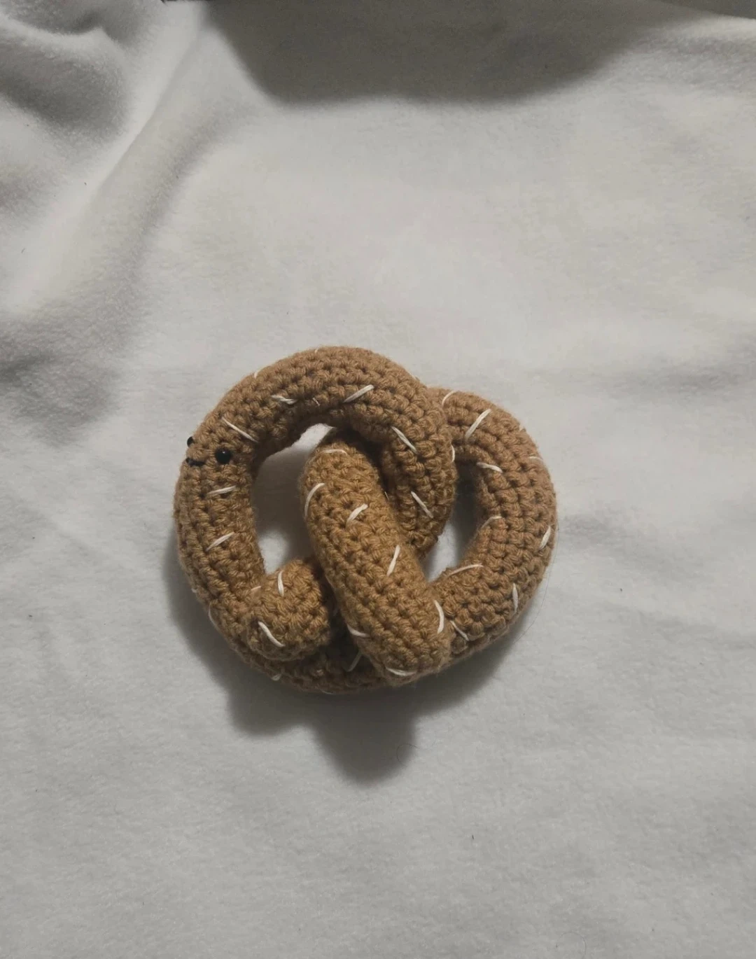 Im selling my handmade brand new crocheted pretzel plush toy. Made with soft yarn and features a cute little embroidered face. 😊🥨