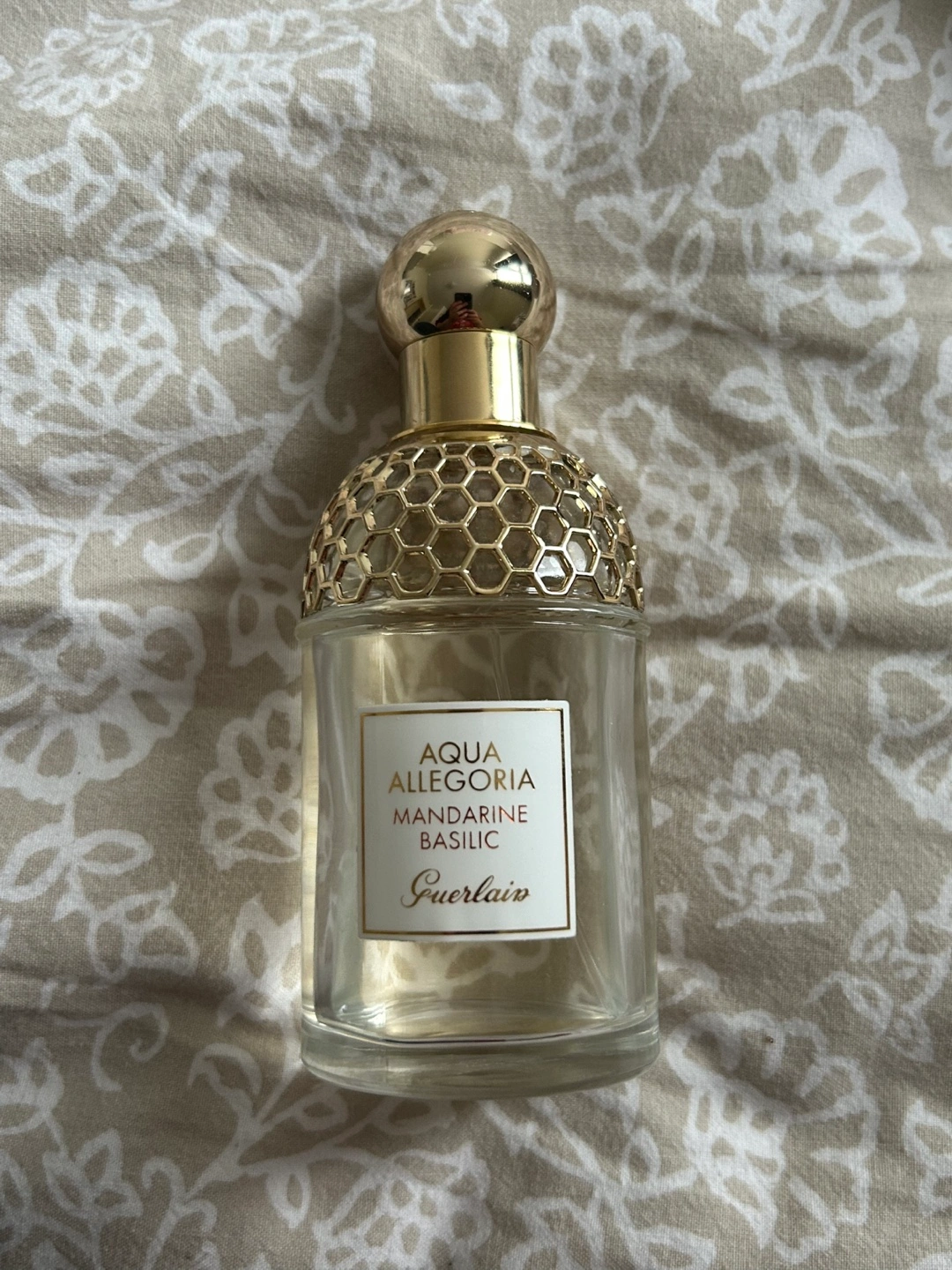 This is a 75mL bottle of the iconic Guerlain Mandarine Basilic Eau de toilette! It’s around 70% full. Retails for $140 + tax! $40 is the final price 🍊🧡🌿