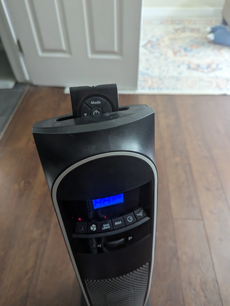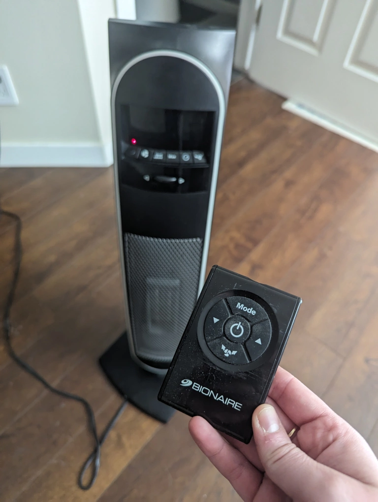 Bionaire high efficiency space heater/fan with remote control. 30" tall. Includes rotation and timer for auto shut off.