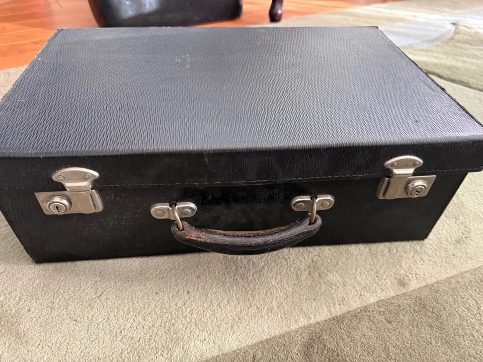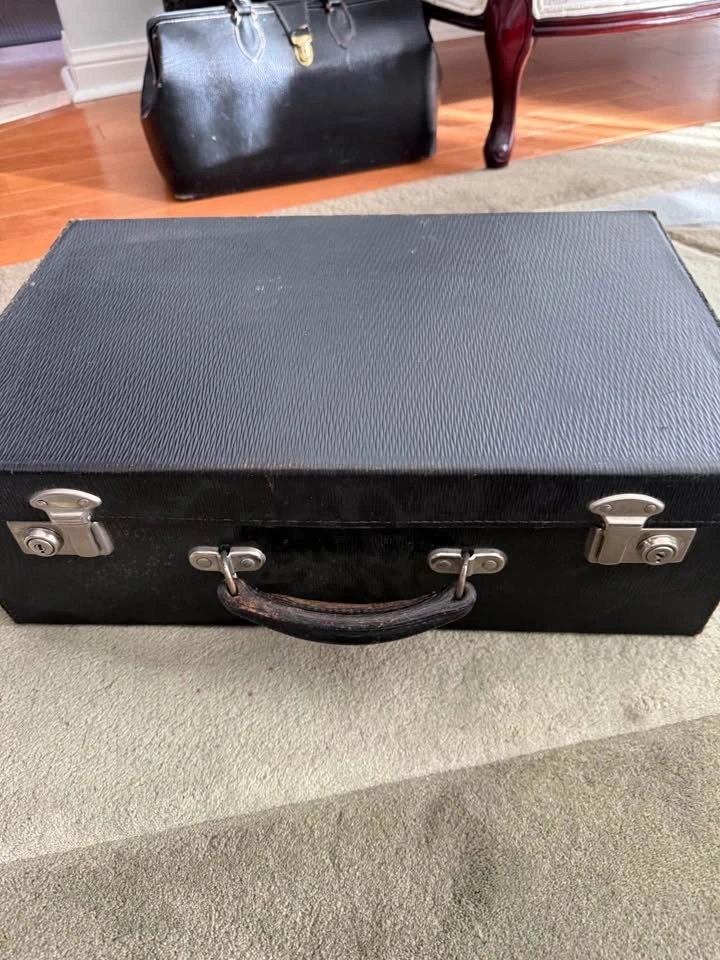 Selling a doctor medicine briefcase in very good condition. Comes with bottles as pictured. This is about 74 years old and includes a set of keys.