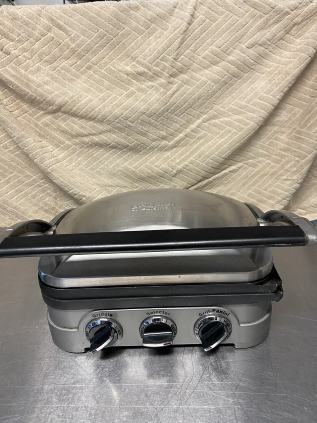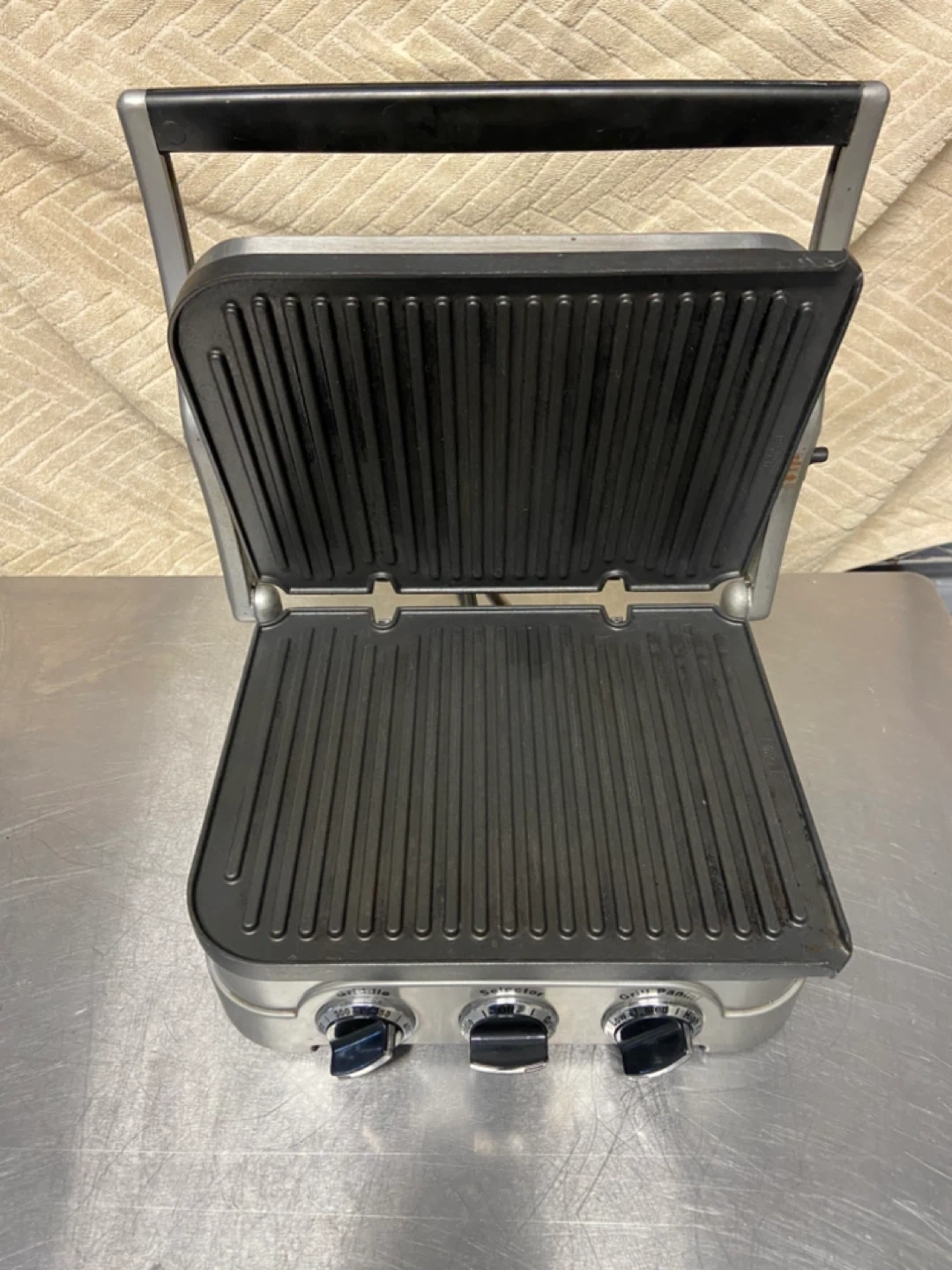 Cuisinart Griddler features reversible grill and griddle plates, non stick. Great for grilled cheese, panini, pancakes etc. It offers a selector for various cooking functions. The unit is 120V, 1500W.