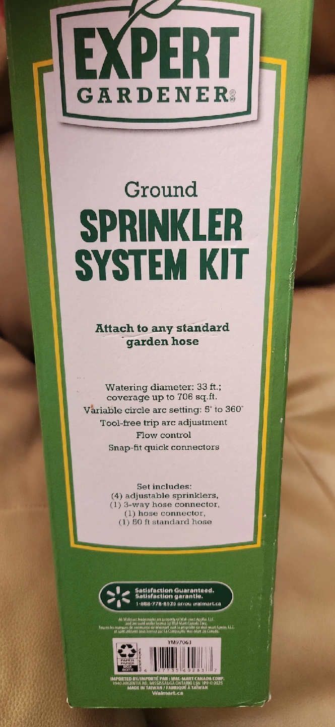 Selling a new Expert Gardener Ground/Sol Sprinkler System Kit! It has 7 pieces including: