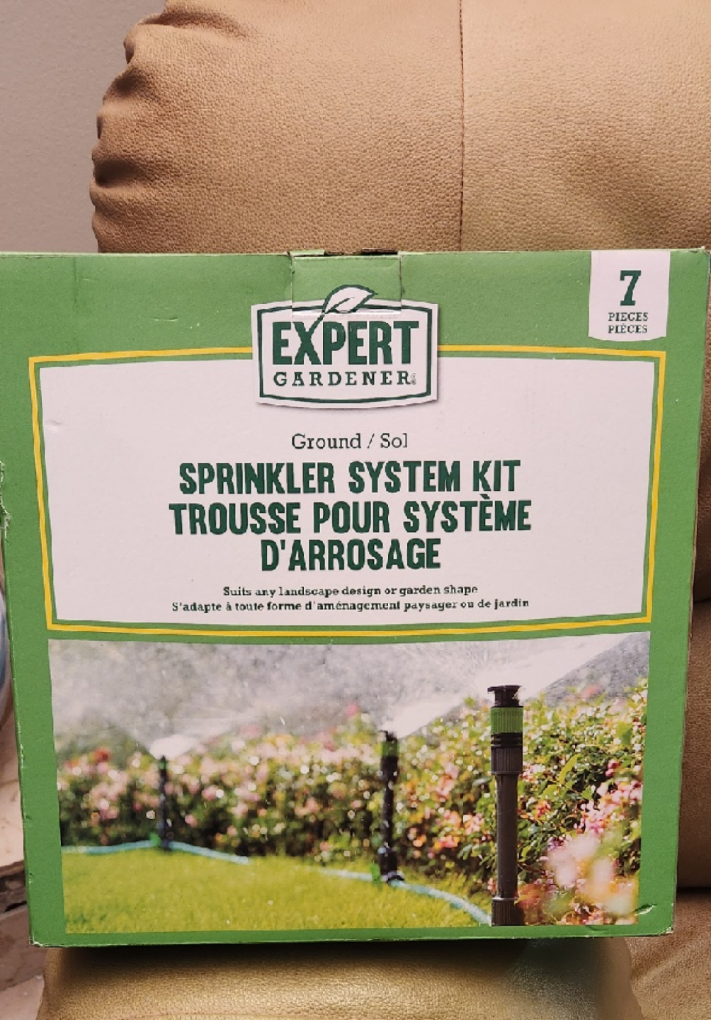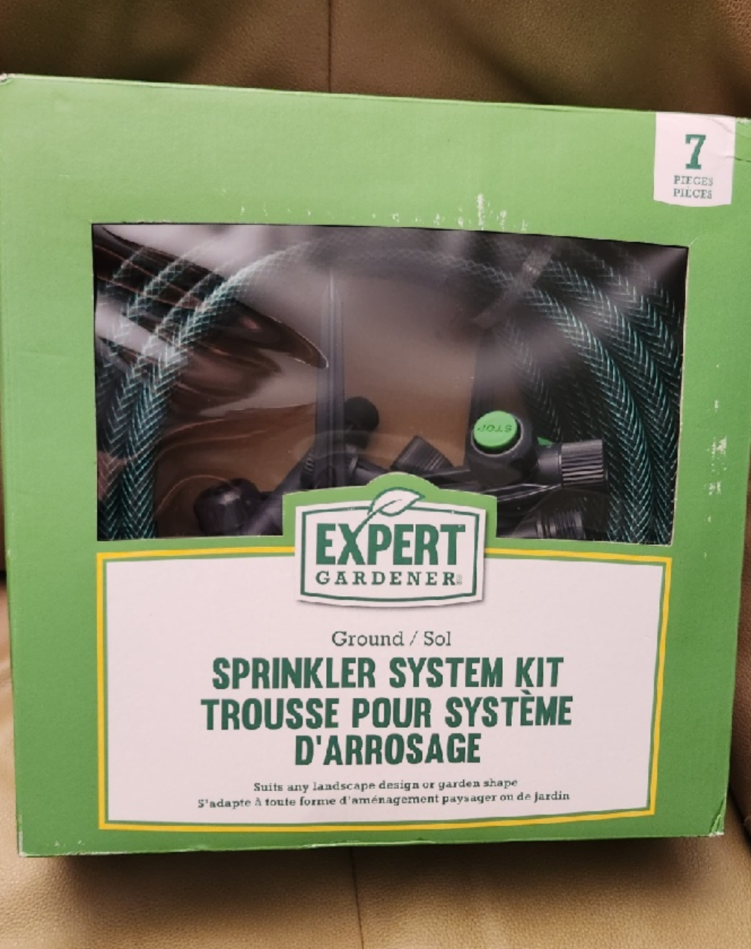 Selling a new Expert Gardener Ground/Sol Sprinkler System Kit! It has 7 pieces including: