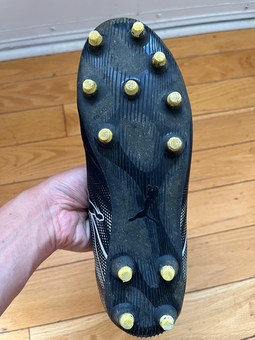 Good condition. Only wear once, not fit for me. Pickup at Stouffville or Markham . Black Puma soccer cleats with white accents. Features lace-up closure and cleated sole. Size 6.5 US.