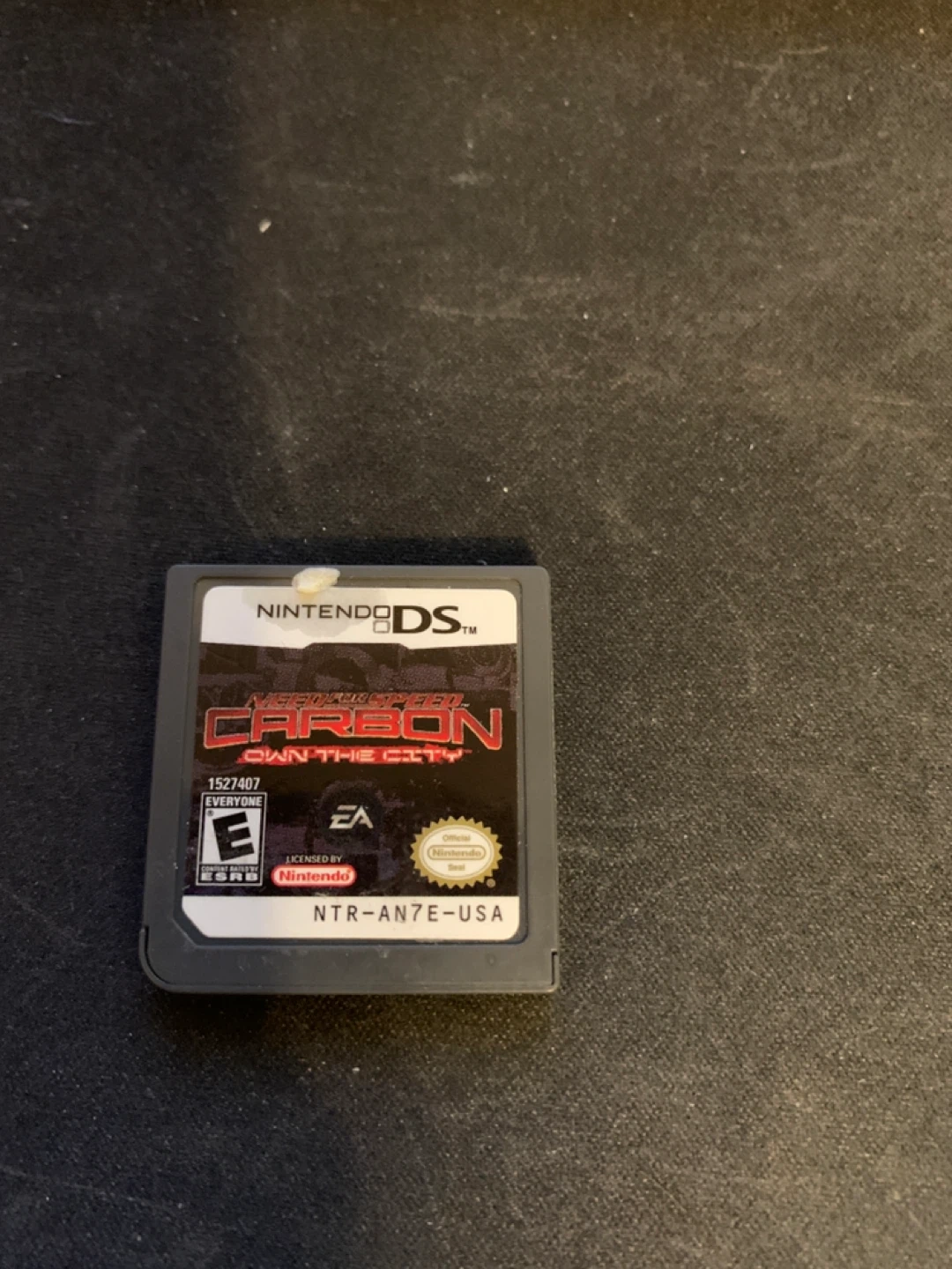 This is the Need for Speed Carbon video game for Nintendo DS. It's rated E for Everyone by ESRB. The game code is NTR-AN7E-USA.