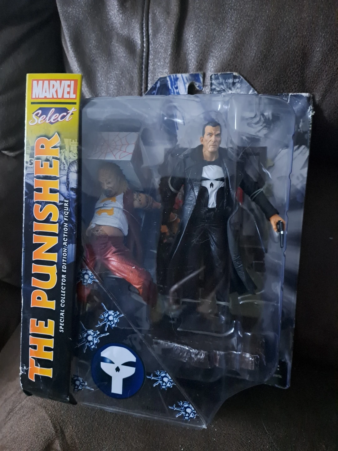 Selling a Marvel Select The Punisher action figure. It's a special collector edition action figure. The package has some wear and tear, as shown in the pictures