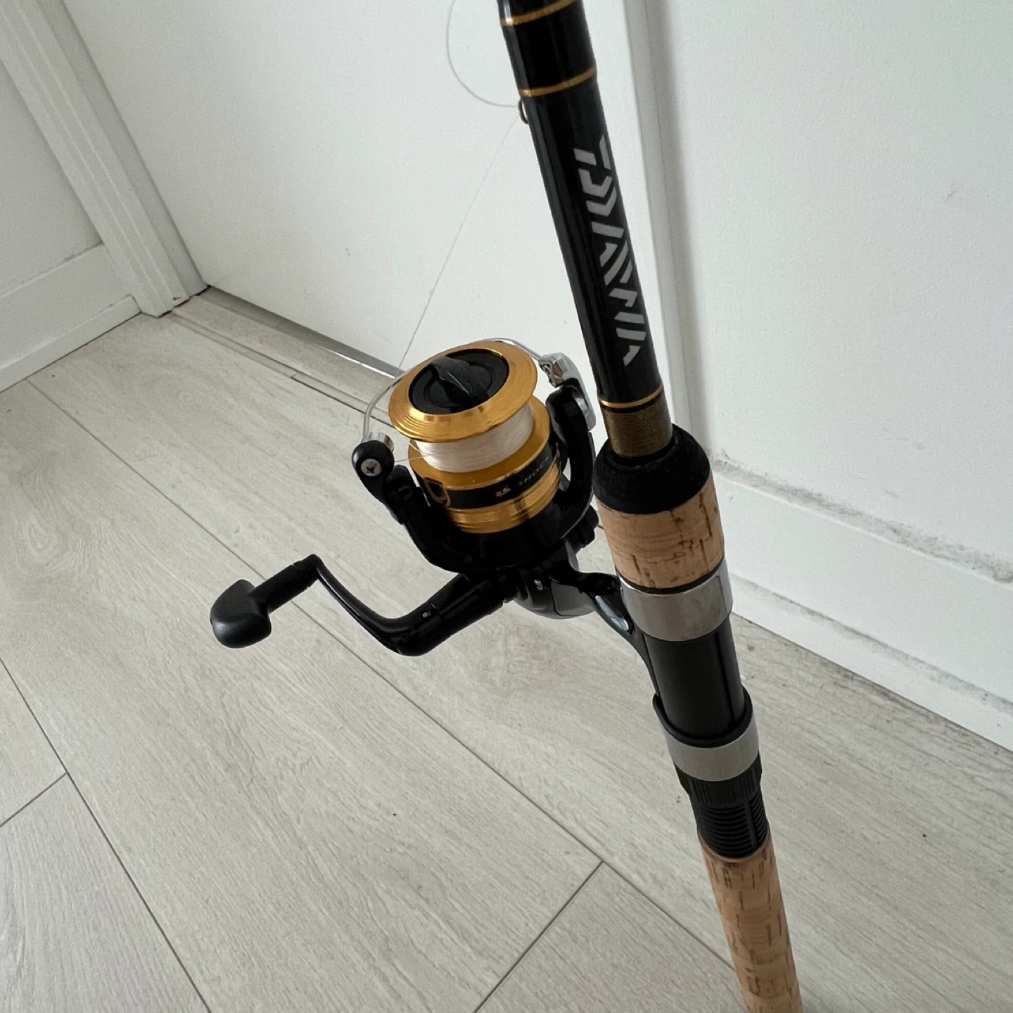 Complete fishing rod and reel combo from Daiwa. Includes a fishing net, fishing reel and a fishing rod.