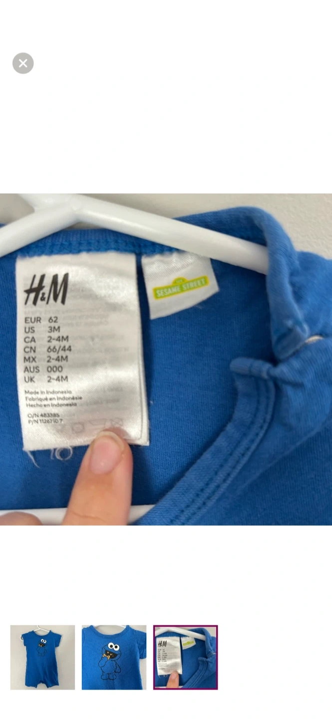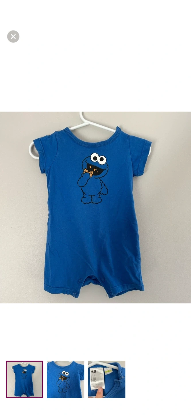 H&M brand. Shirt sleeve shorts romper. Blue in colour with Cookie Monster graphic. Size 2/4m. Brand new condition