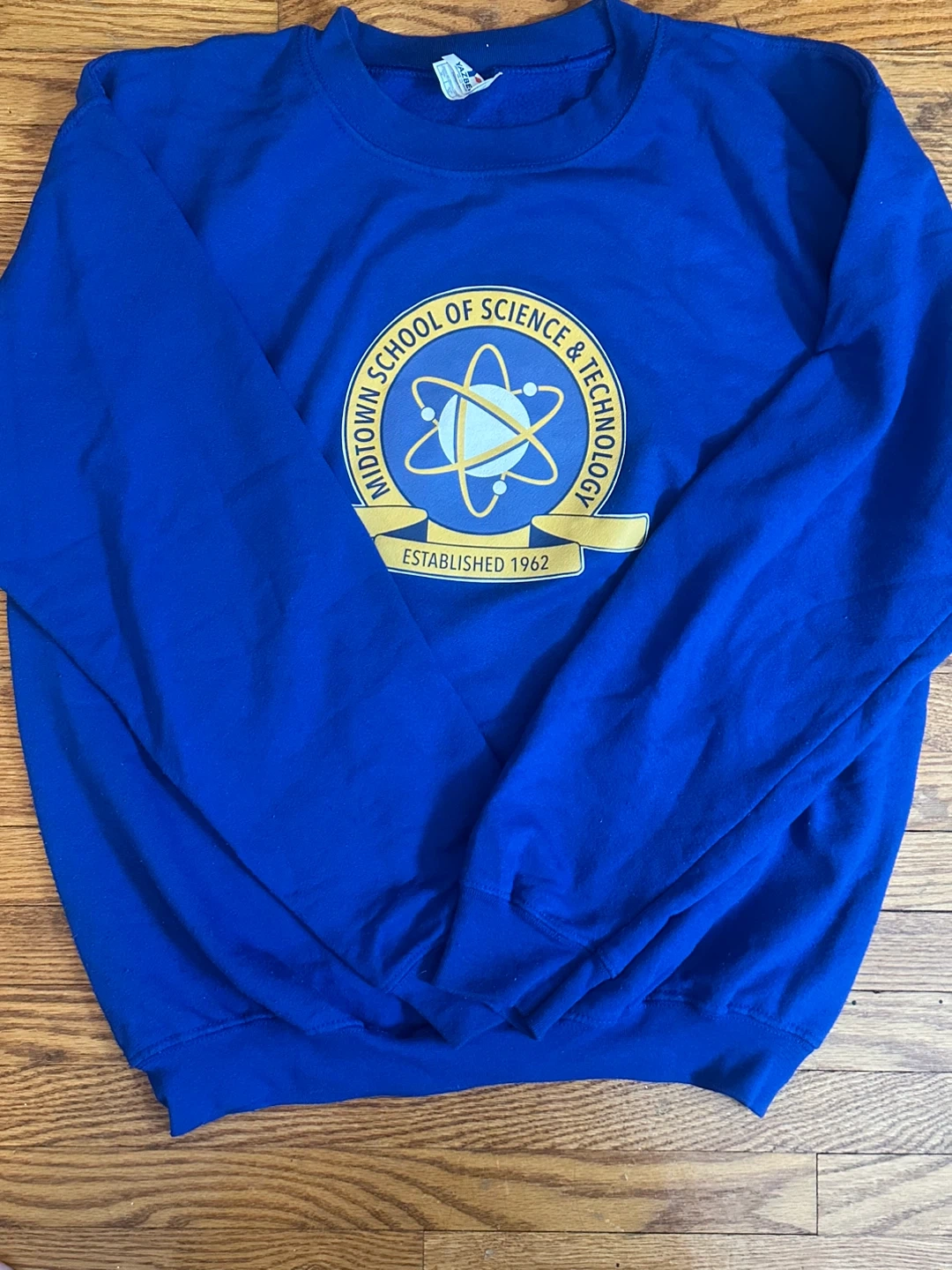 -Blue crewneck sweatshirt from Peter Parker / Spider Man Midtown School of Science & Technology.