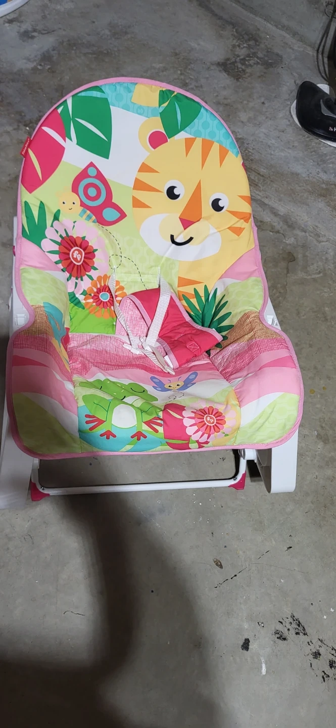 This Fisher-Price baby bouncer seat features a colourful jungle animal design. It has a secure harness and a gentle bouncing motion. It's perfect for keeping your little one entertained and comfortable.