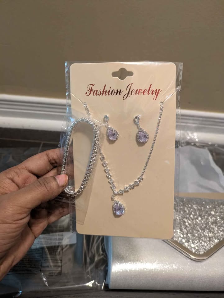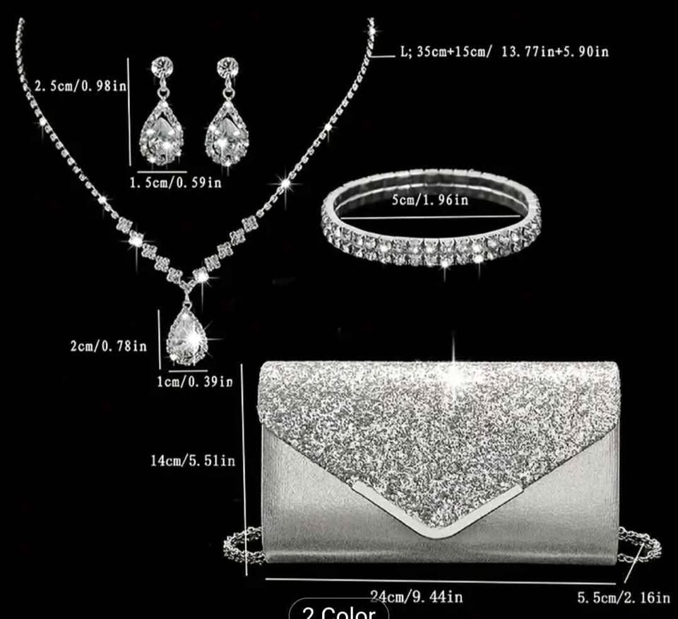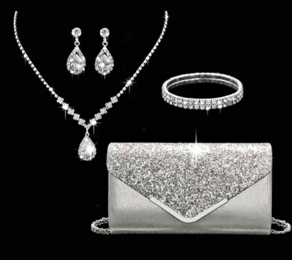 Brand new sparkling glitter evening bag with jewelry combo set