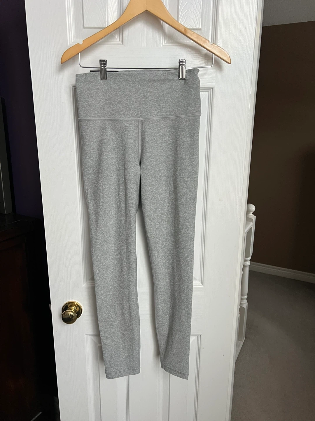 These Tna leggings are made from a soft, heather grey fabric. They're high-waisted with a comfortable fit. Great for everyday wear or workouts!