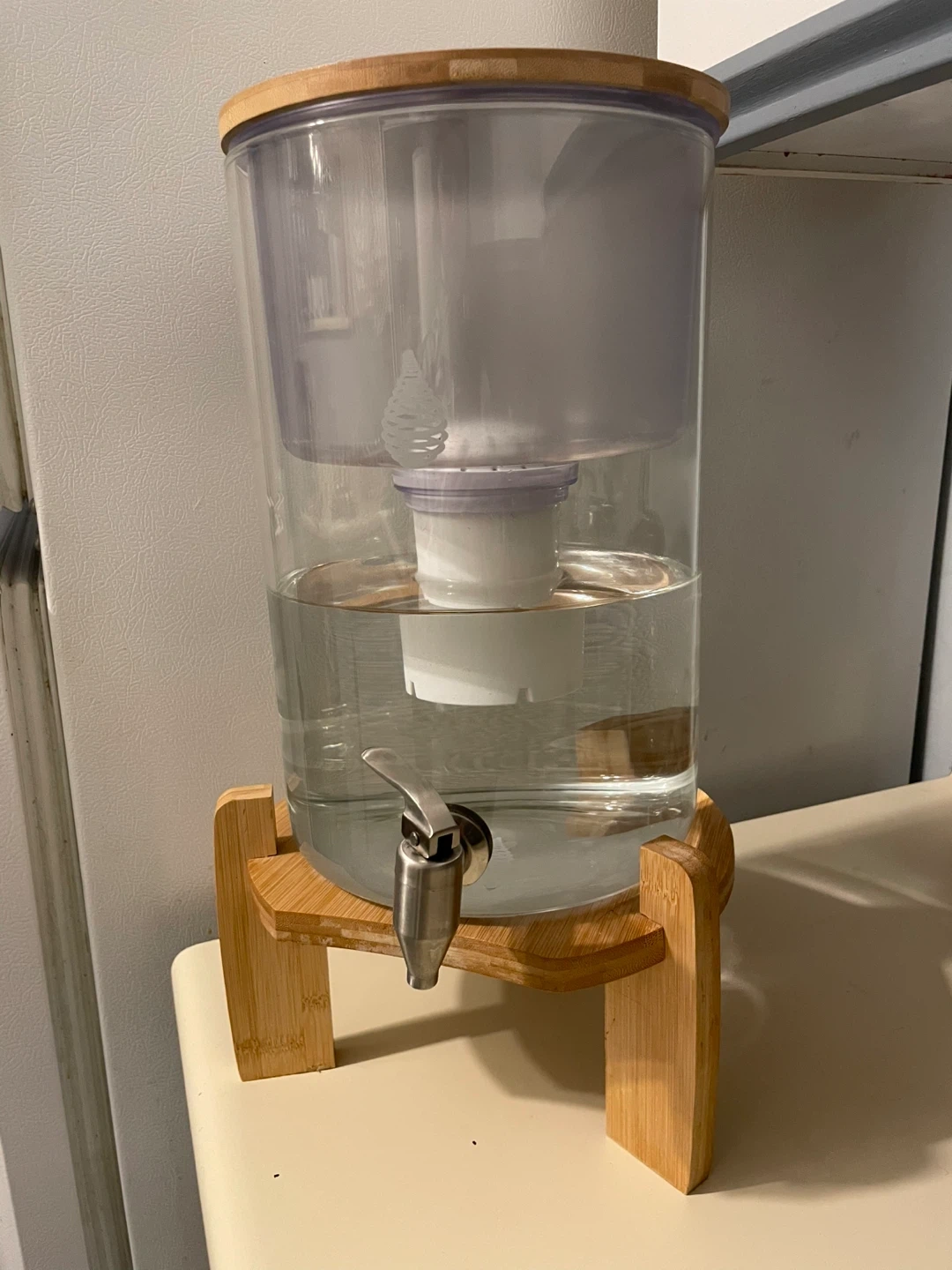 466This dispenser features a glass container, a wooden stand, and a filter to help purify your water. Replacement filters are easily found online :). Comes with the instruction manual for installing a new filter. Originally bought for $130. MINERAL-RICH WATER - Adds selenium, zinc, iron, and magnesium. PREMIUM MATERIALS - Borosilicate glass tank on elegant wooden standing legs. LONG-LASTING & ECO-FRIENDLY - Filters up to 96 gallons (363L) per replacement. *Posting ahead of time to gain attention* *Selling on November 14th!*