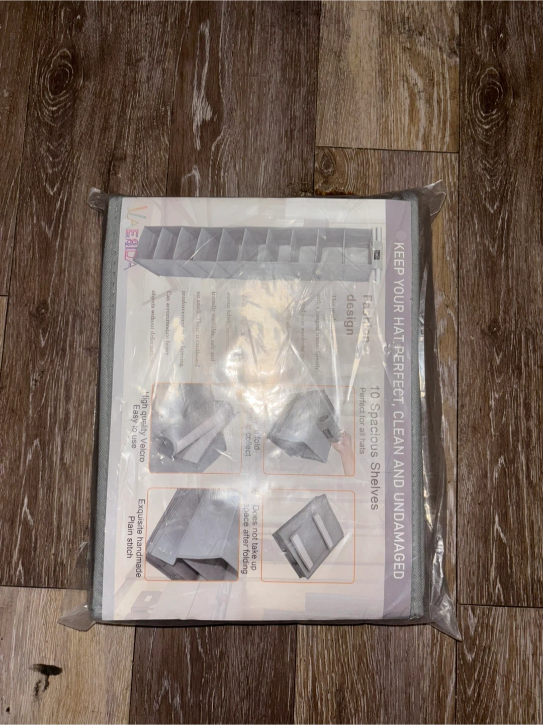 Keep your hats perfect, clean and undamaged with this Valeda 10-shelf hanging closet organizer! It features a fading design and 10 spacious shelves perfect for all hats. It's easy to use with high quality Velcro and exquisite handmade plain stitch. It folds to hide and doesn't take up space after folding
