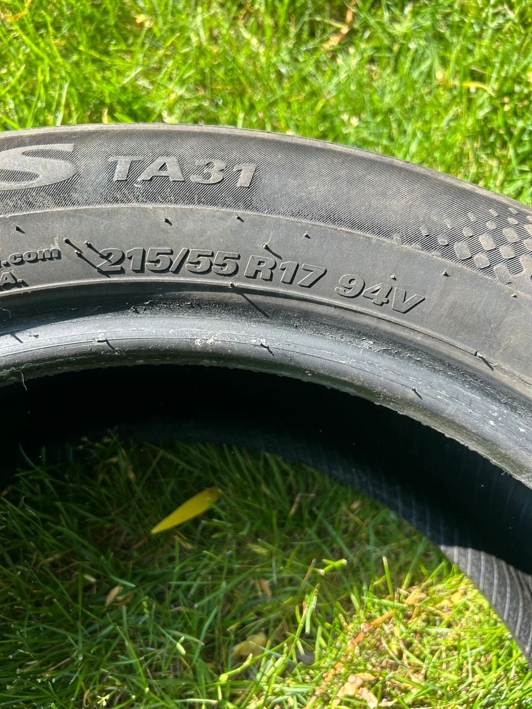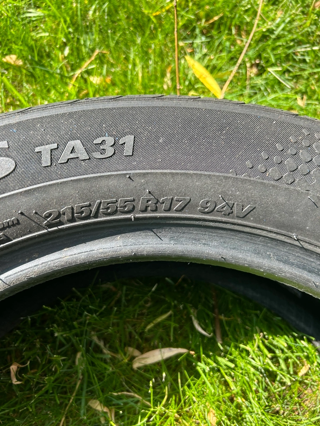 Selling a set of four TA31 tires. The size is 215/55R17 94V. They're in fair condition and ready to be put on your car for one season. Great to use when trading in your car at the end of a lease.