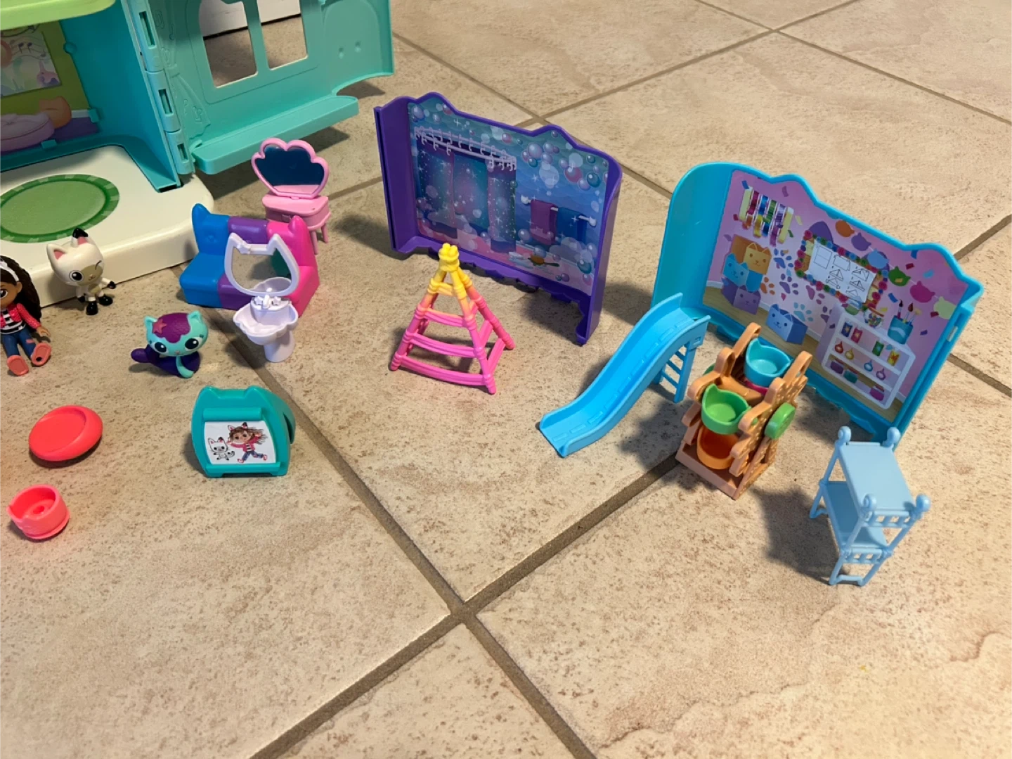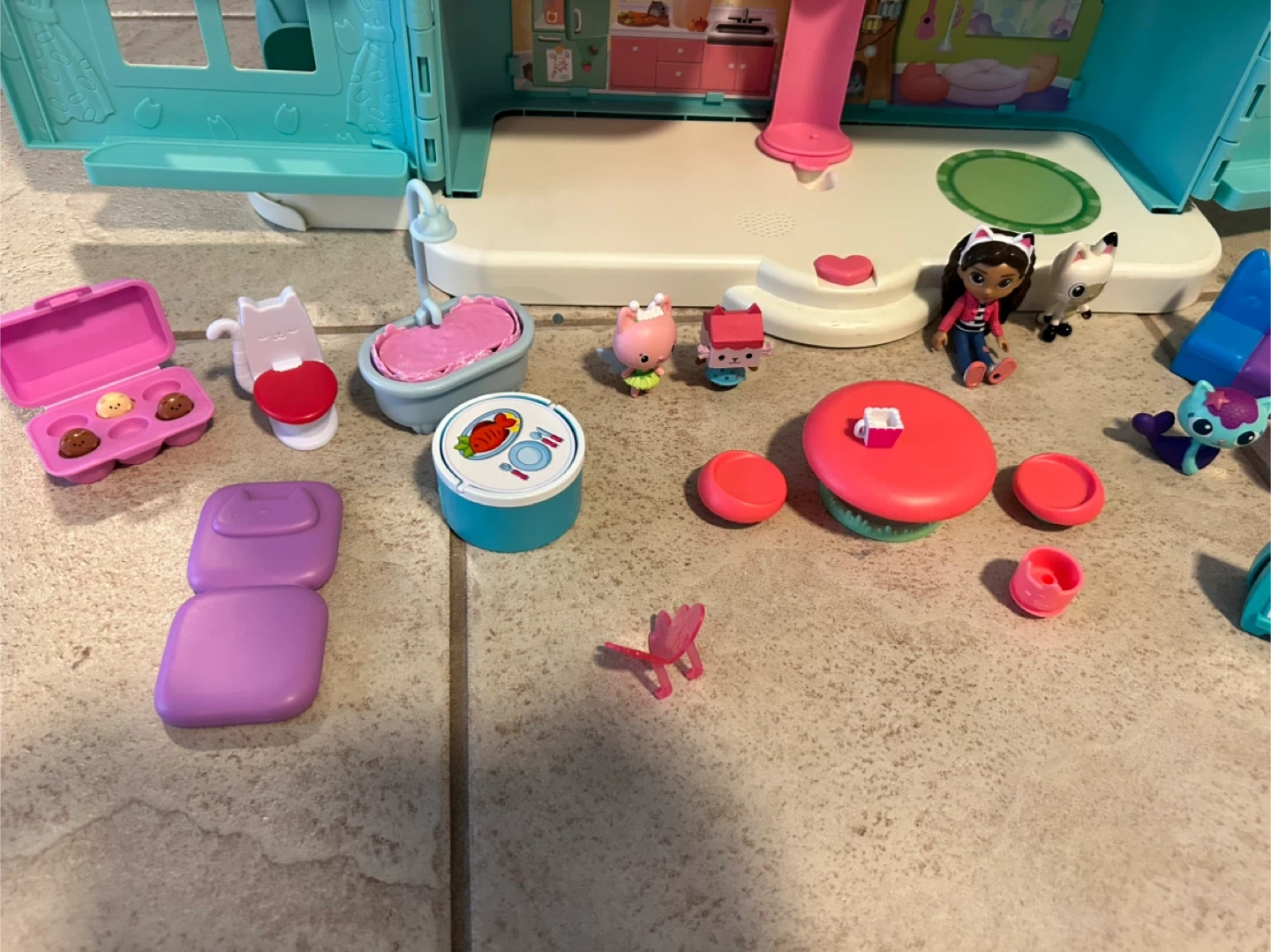 This Gabby's Dollhouse playset comes with the main house, several figures, and numerous accessories. It's perfect for imaginative play and recreating scenes from the show! Included are mini-figures, furniture, and various room accessories.