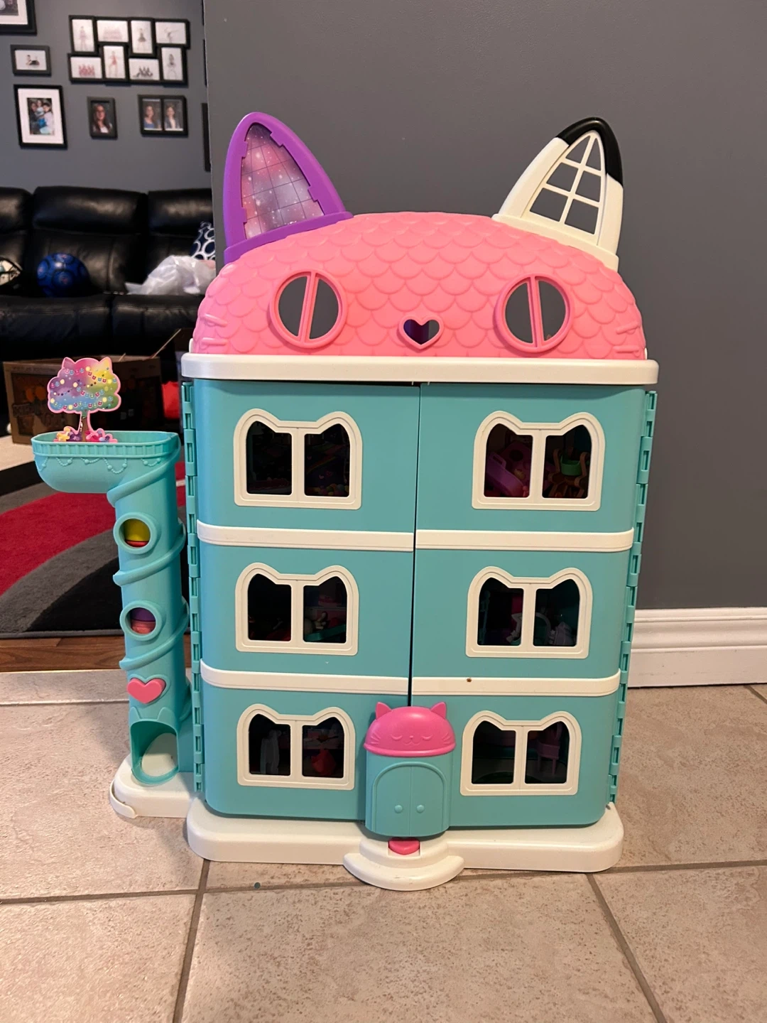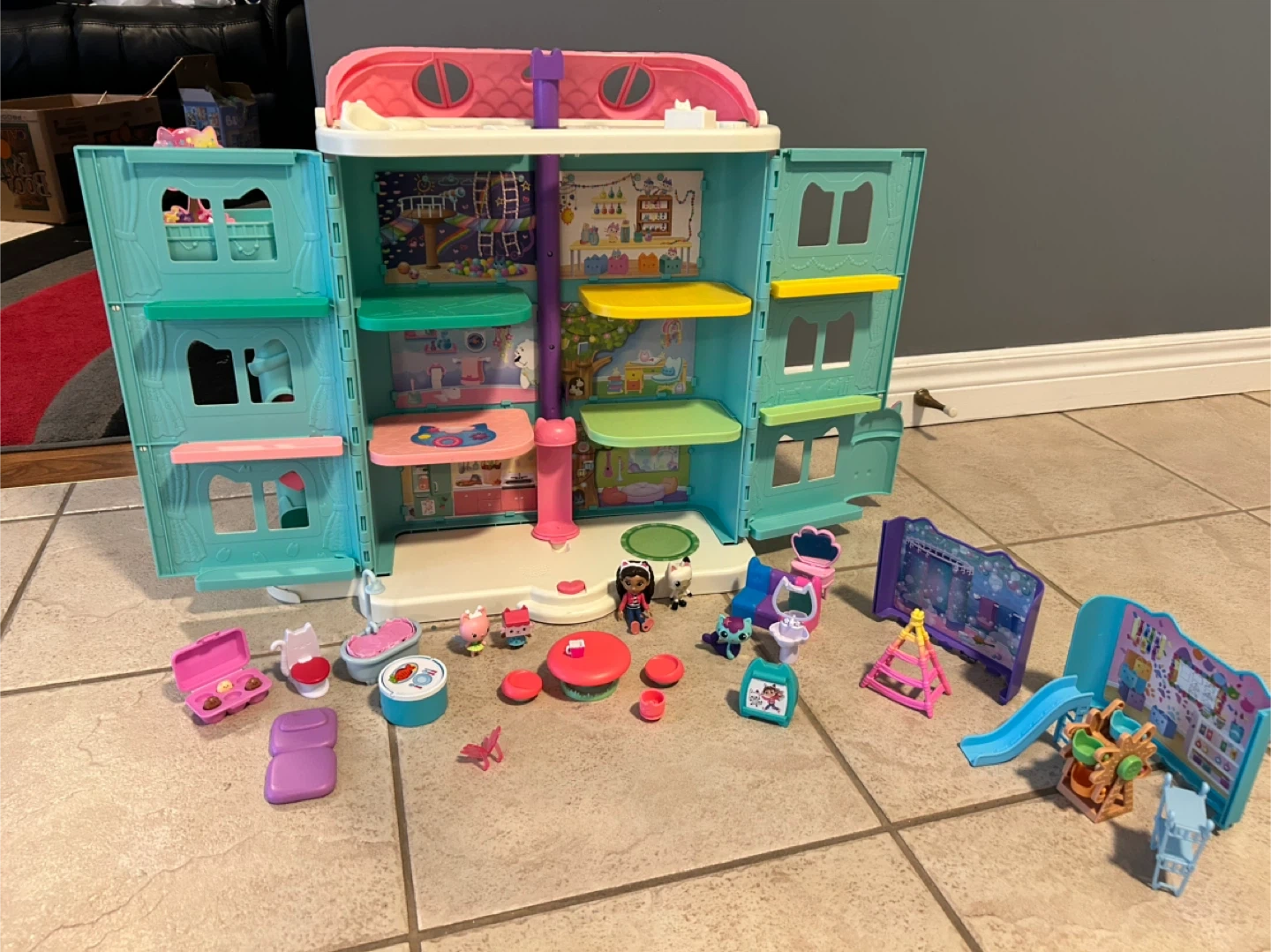 This Gabby's Dollhouse playset comes with the main house, several figures, and numerous accessories. It's perfect for imaginative play and recreating scenes from the show! Included are mini-figures, furniture, and various room accessories.