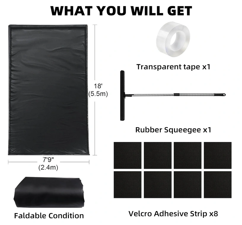 It’s also very easy to clean. When it gets dirty, you just take it outside, rinse it off, and use the included squeegee broom to push the water away. It dries quickly and looks good as new. Installation takes only a few minutes and doesn’t require any tools.
