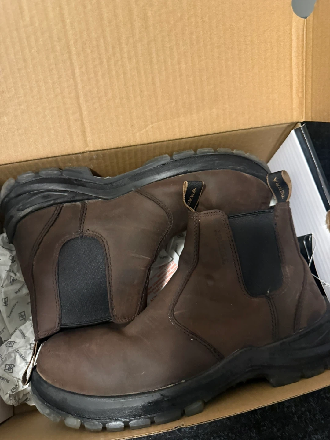 Brown leather Chelsea-style steel toe boots from Terra. Size 7. Price is negotiable. Don’t need anymore hence why I’m selling.