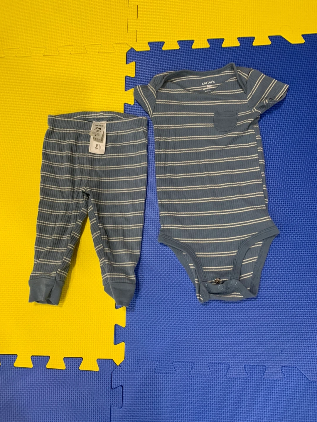 3) A short sleeve bodysuit and matching pant- 9M- Carter’s
