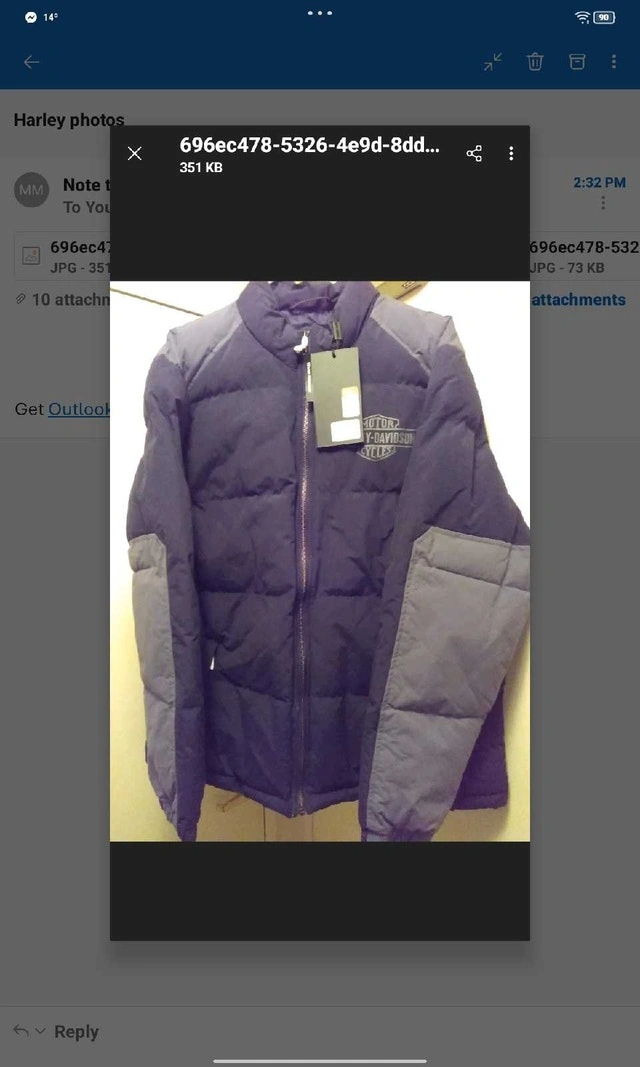 Get ready to ride in style with this Harley Davidson puffer jacket! This jacket is new with tags. It is a stylish way to show your love for the open road. Brand: Harley Davidson, Style: Puffer Jacket, Colour: Black and Grey. Condition: New, Size: Large. Cash accepted.