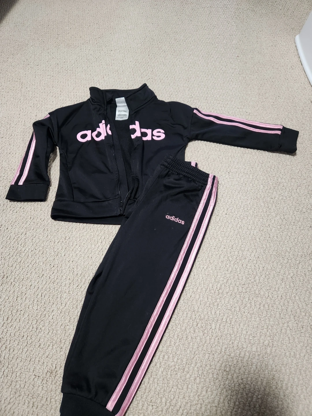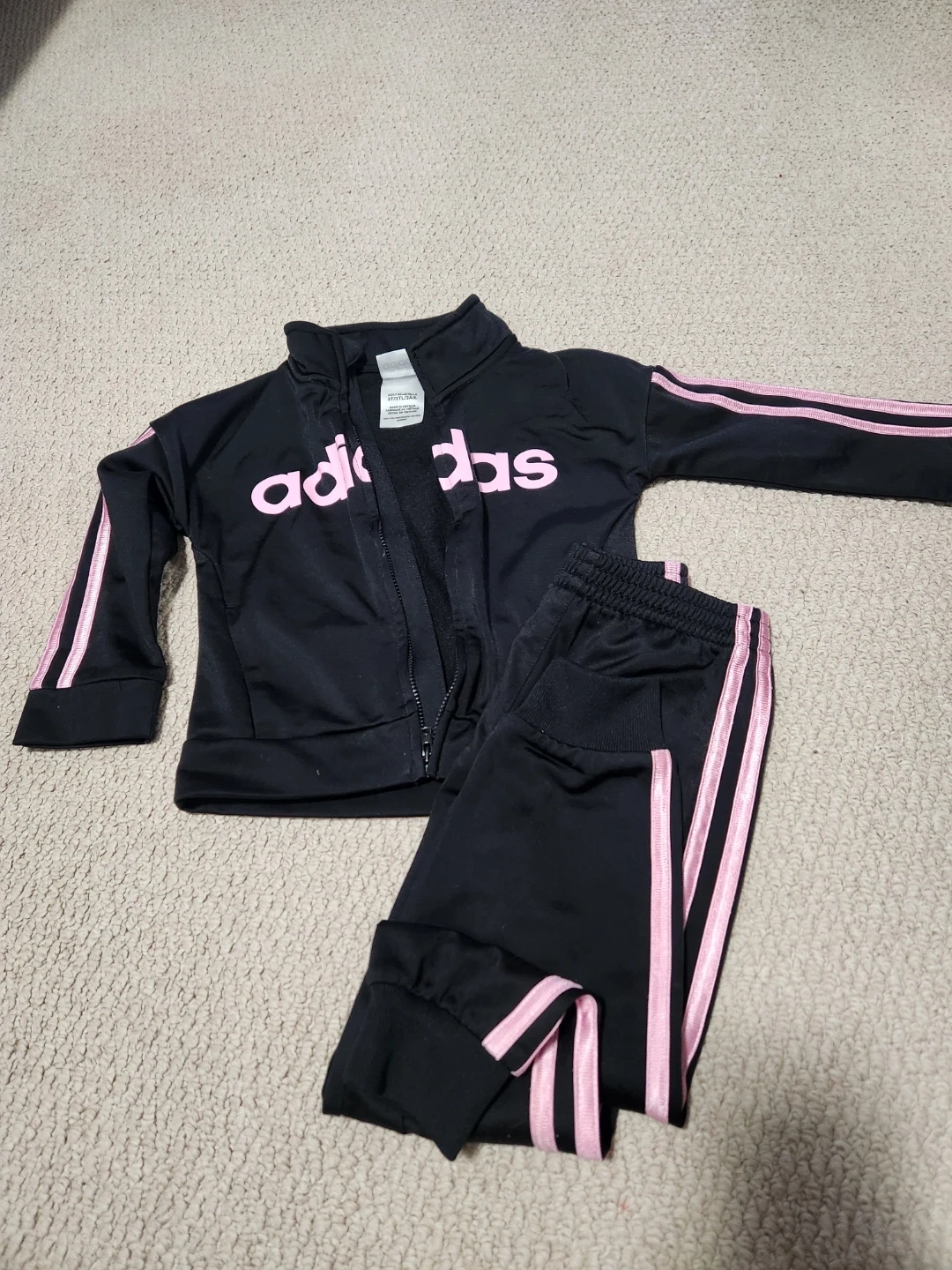Buy & SellToddler Girl 3t Adidas Tracksuit Set πToddler Girl 3t Adidas Tracksuit Set π$12Toddler girl Adidas tracksuit set. It includes a zip-up jacket and matching pants. The set is black with pink Adidas branding and stripes. ConditionLike newAge3-5 yearsWHERE TO MEET2 McQueen DrView MapSELLERverifiedsidhuParis942 reviews0 chatsΒ·0 favoritesΒ·2 viewsSEND CHAT TO SELLERHi sidhu! Iβm interested in your listing.Hi sidhu! Iβm interested in your listing.Get the Karrot app to chatSign In to chat