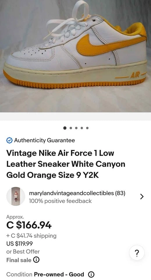 Vintage Nike Air Force 1 Low "Canyon Gold" from the 2002 "LA" or "Lakers" edition. Men's size 11, used in fair condition. Pick up in Vancouver by Knight St and 33rd Ave.