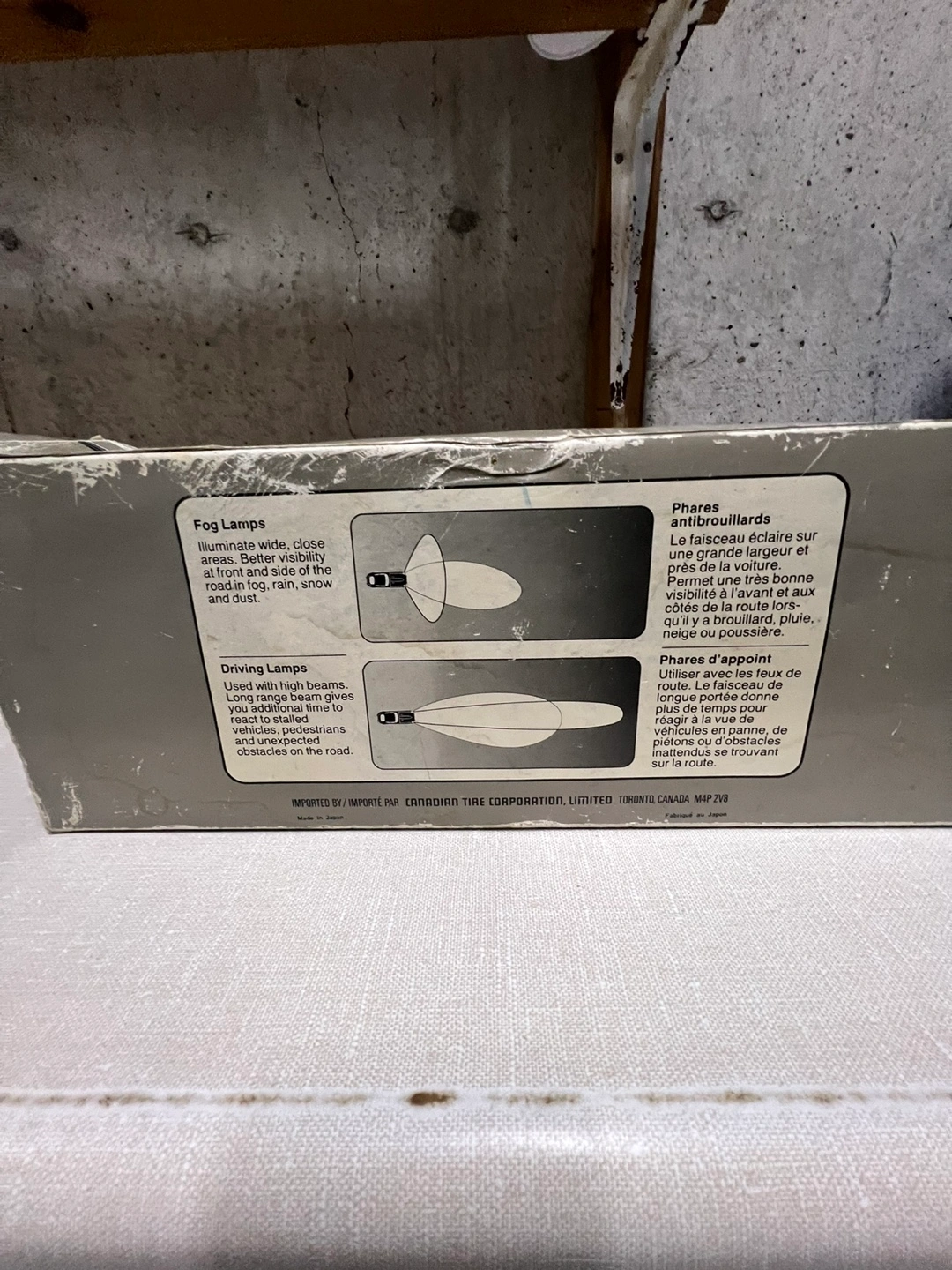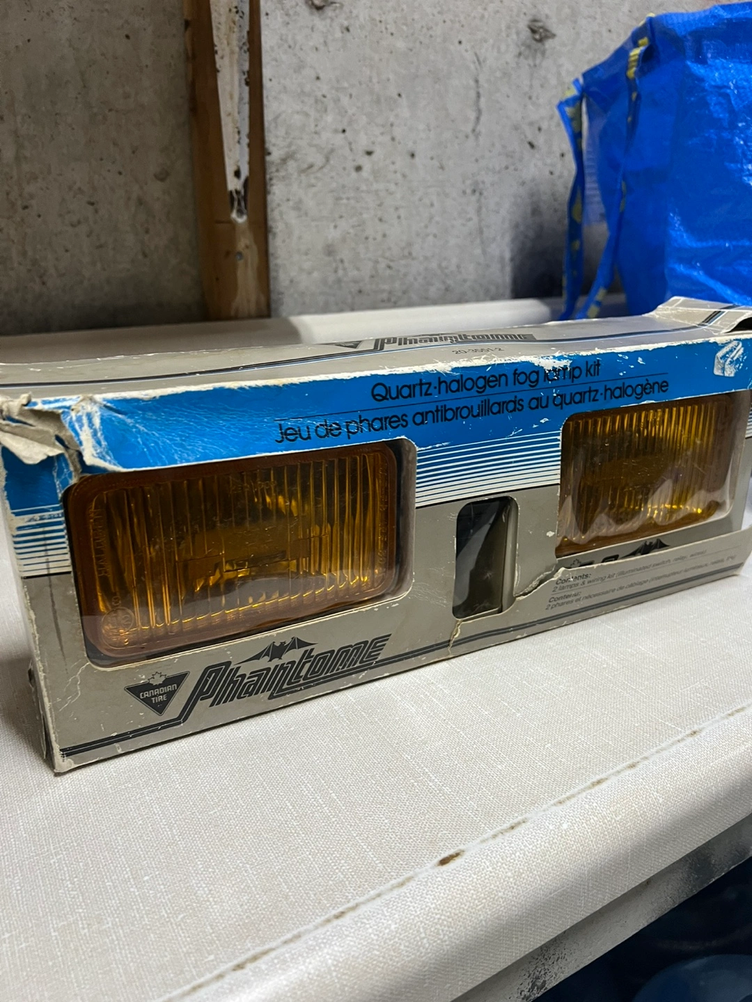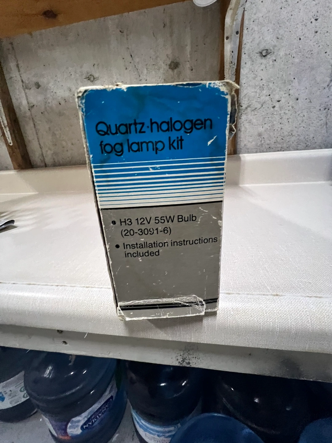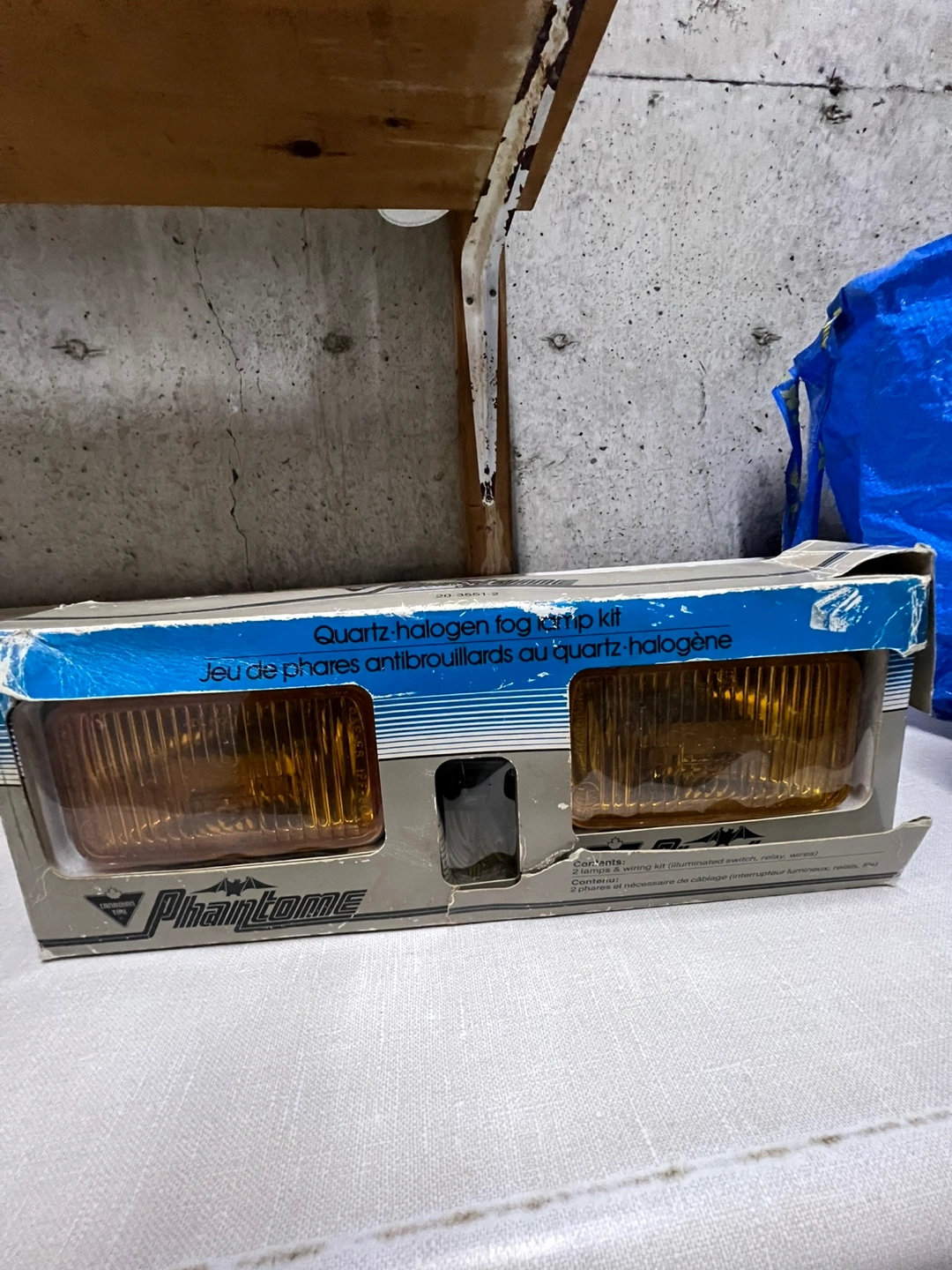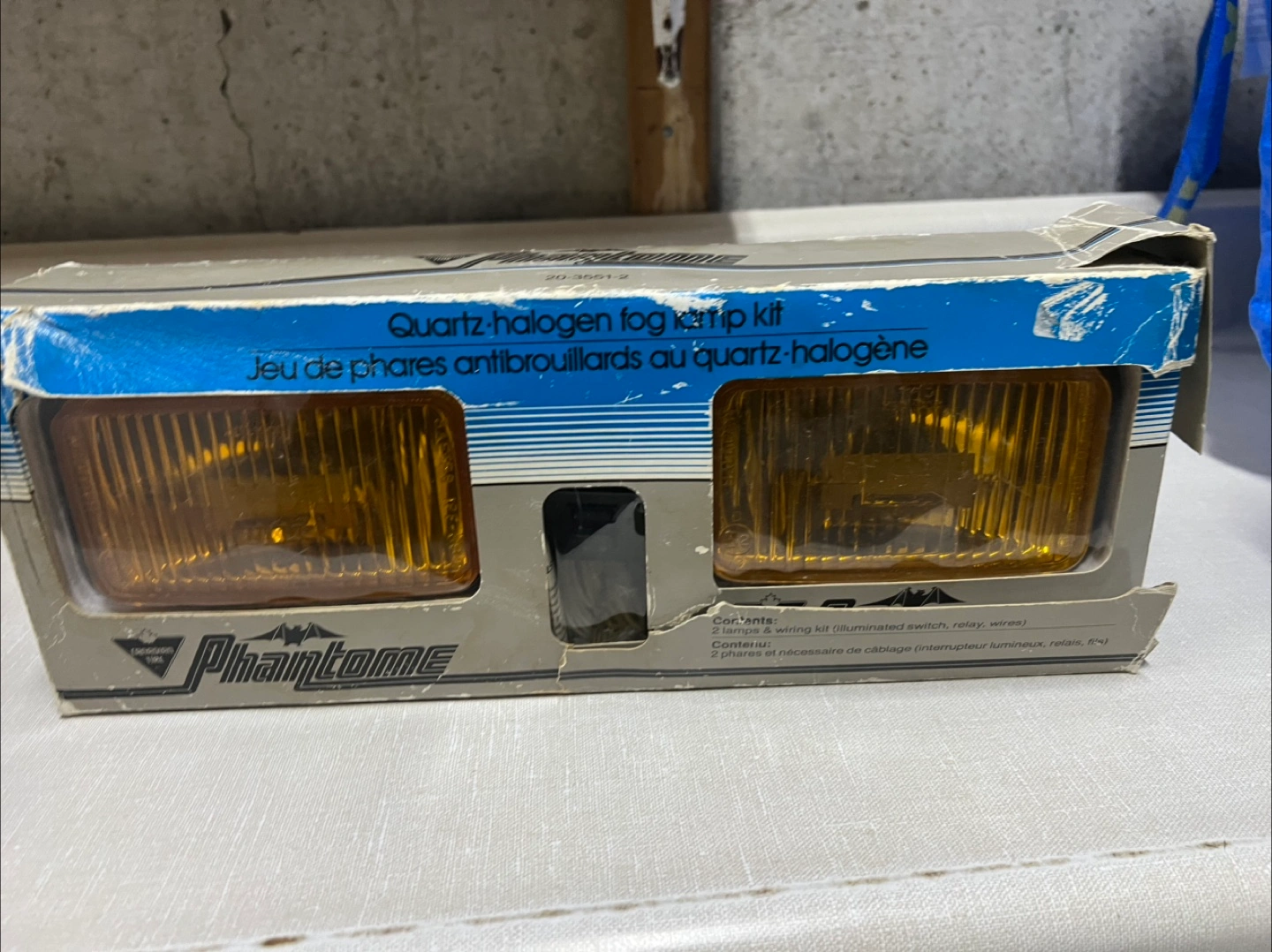 Selling a Phantome Quartz-halogen fog lamp kit! The box includes: - H3 12V 55W Bulb - Installation instructions - 2 lamps & wiring kit (illuminated switch, relay, wires) It's designed to illuminate wide, close areas at the front and side of the road for fog, rain, snow and dust