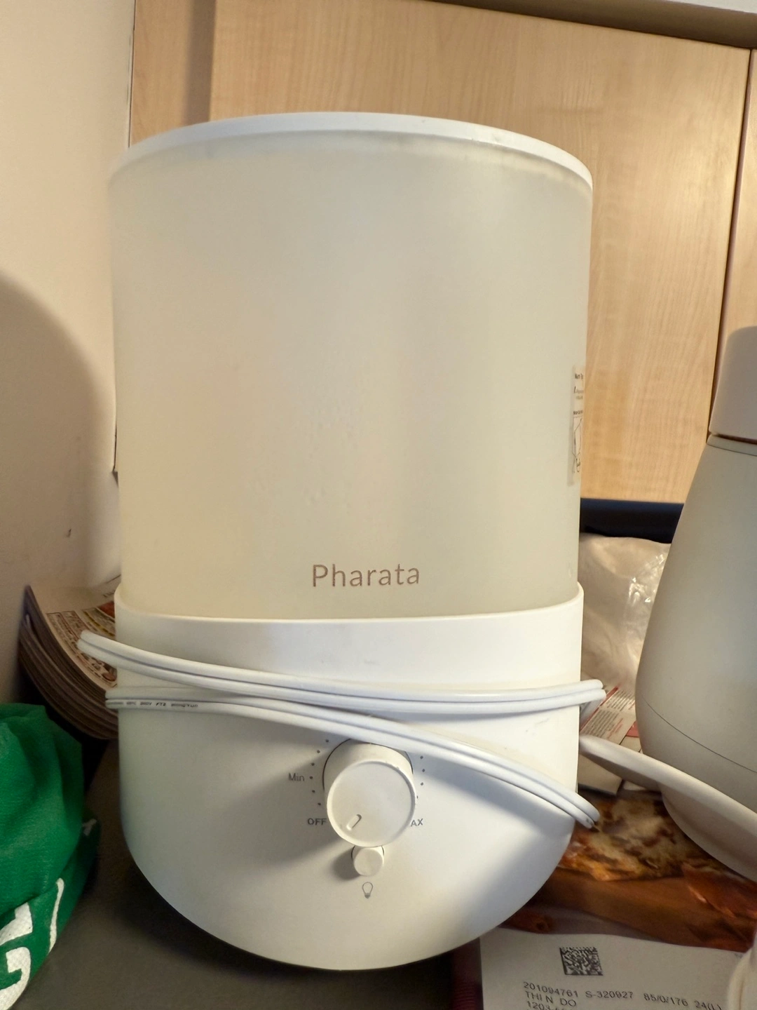 Selling a Pharata humidifier. It has a simple control knob with Min, Off, and Max settings. Great for adding moisture to the air during dry Canadian winters!