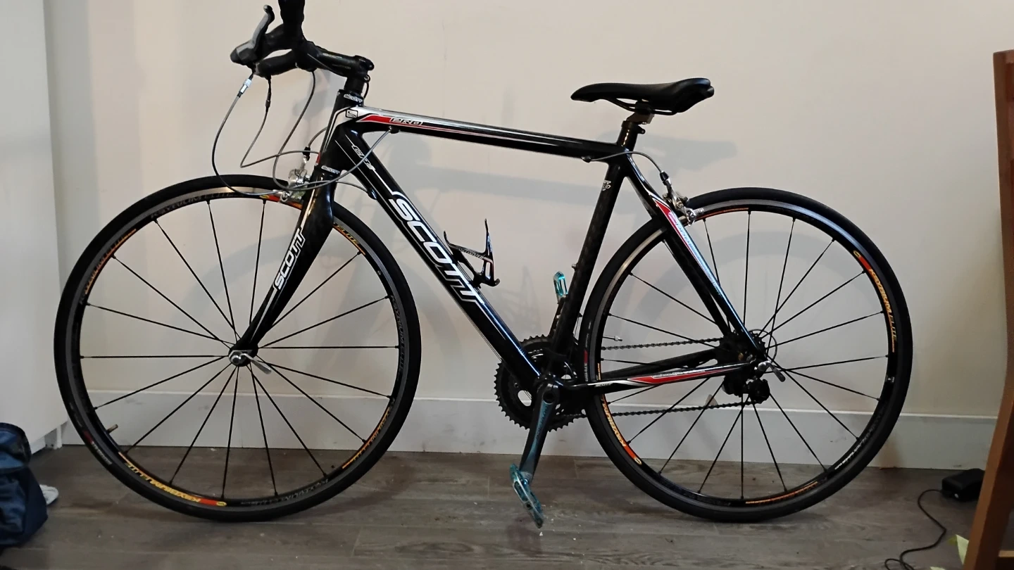 This is a Scott cr1 Pro road bike due to a new baby, it was put in storage for a few years. It will need new tires I pumped em and took it for a ride this summer, Stellar, killer bike very light,