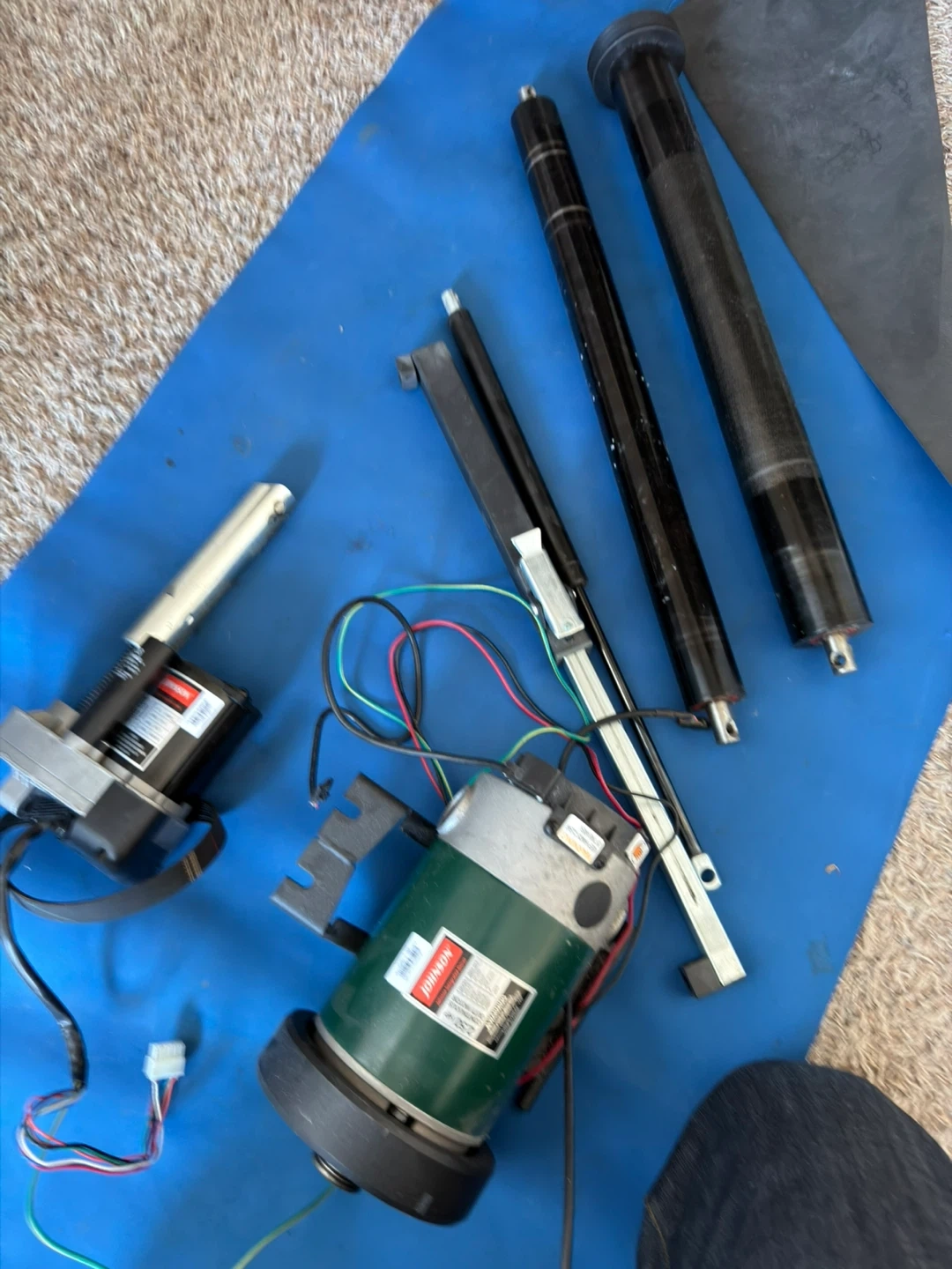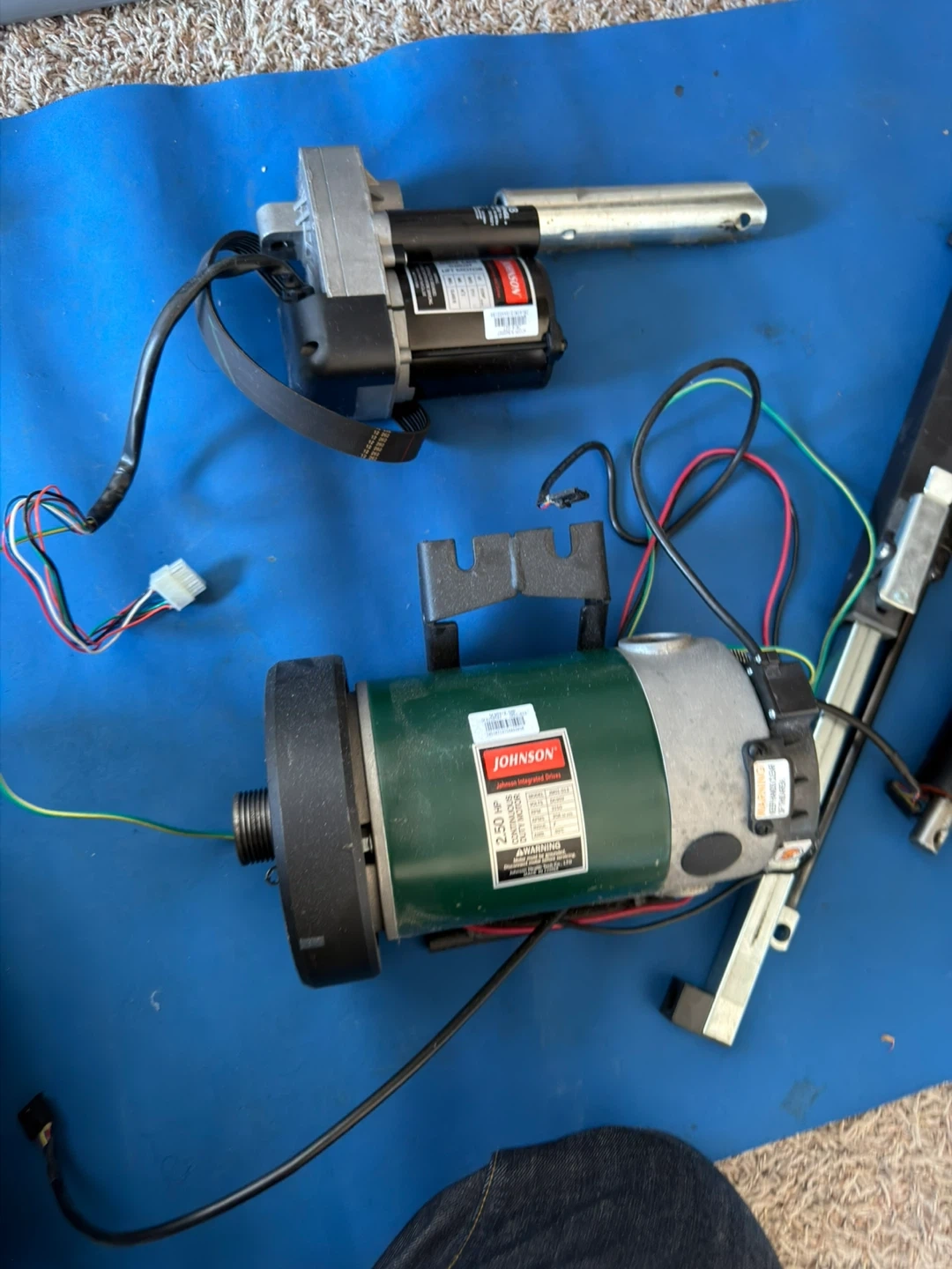 Complete set including a 2.5 HP Johnson motor and a lift motor. Also includes the main control board and lift cylinders. This set is perfect for replacing parts on a Johnson treadmill or for a custom build.