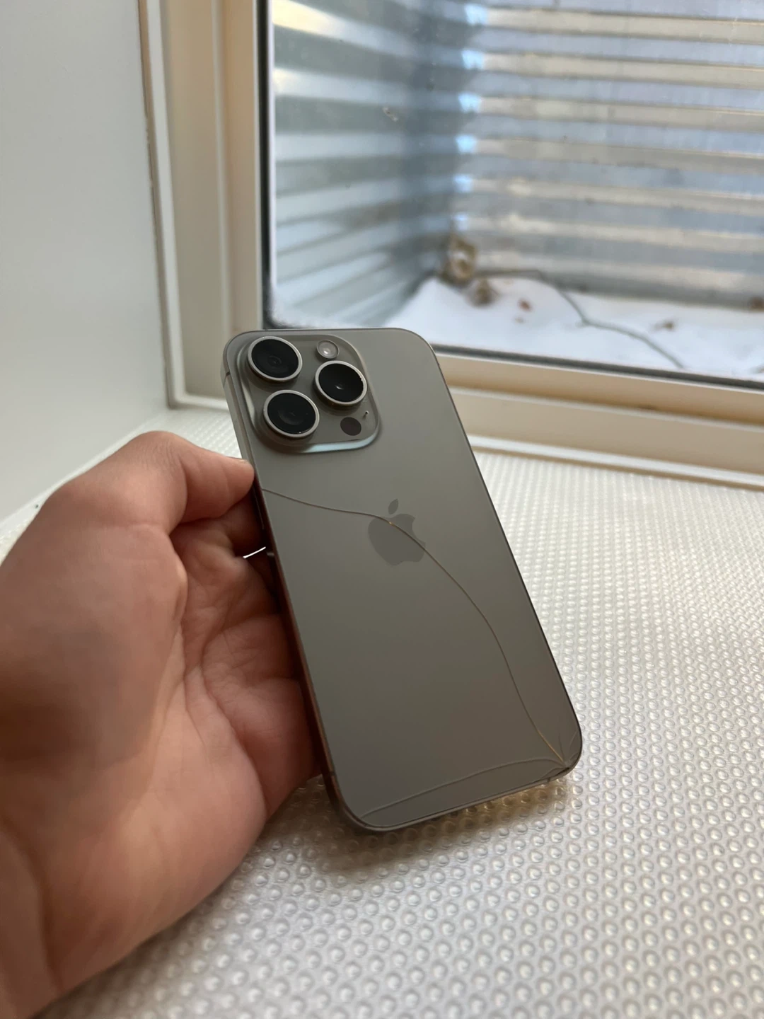 - Other than the hairline crack on the back, the phone has no cracks, and zero damage on the titanium or on the screen.