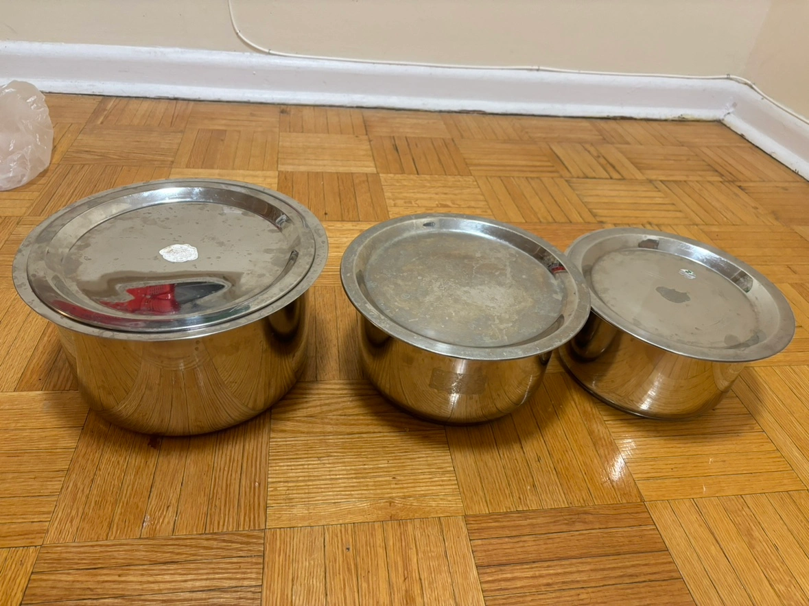 Buy & SellStainless Steel Cookware Pot Set of 3 with LidsStainless Steel Cookware Pot Set of 3 with Lids$35Set of three stainless steel Cookware pots with lids.WHERE TO MEETELDView MapSELLERKeshavRexdale666 reviews1 chats·0 favorites·26 viewsSEND CHAT TO SELLERHi Keshav! I’m interested in your listing.Hi Keshav! I’m interested in your listing.Get the Karrot app to chatSign In to chat
