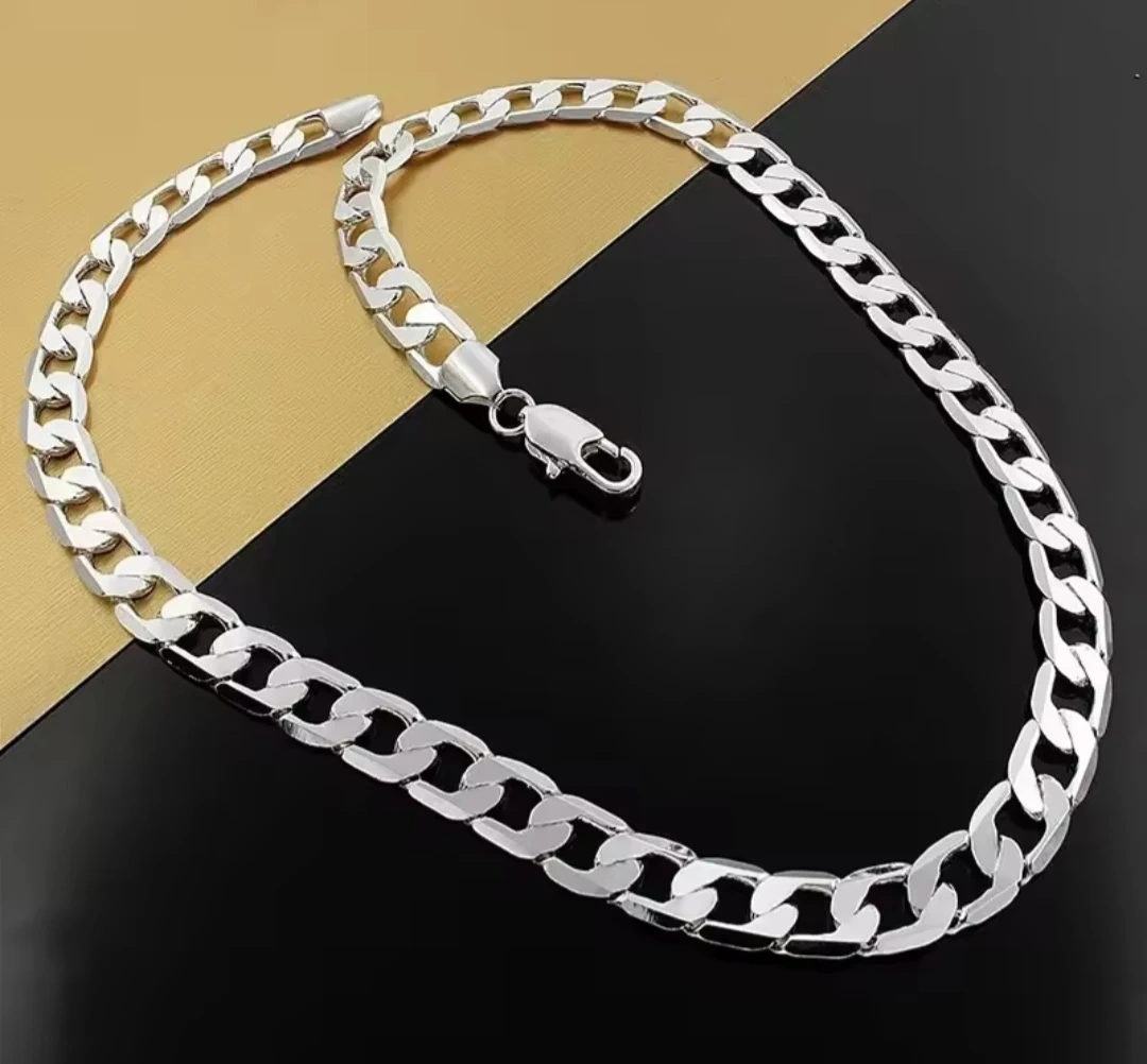 This is a stylish silver curb chain necklace. It features a classic link design with a secure lobster clasp. Perfect for adding a touch of shine to any outfit!