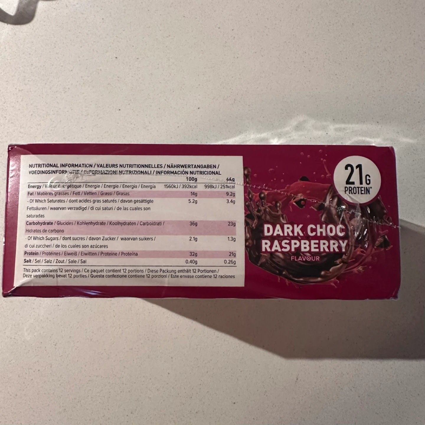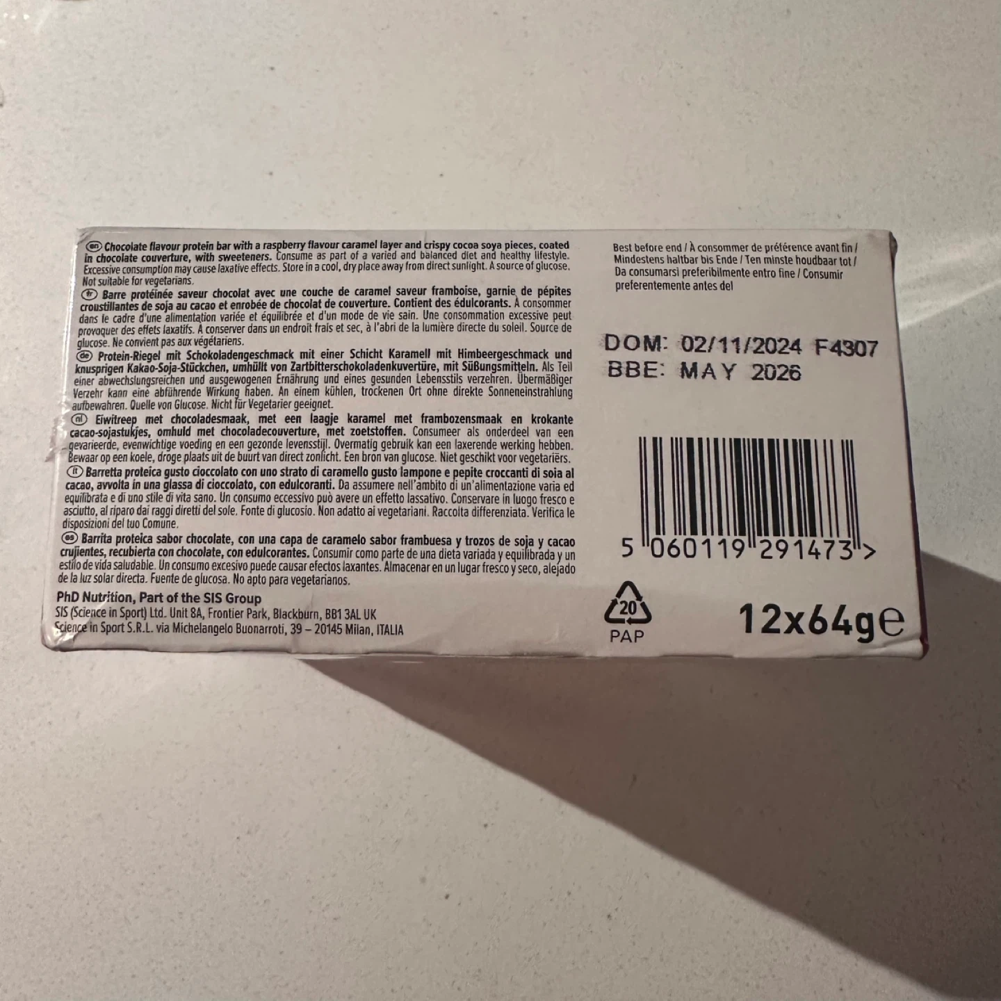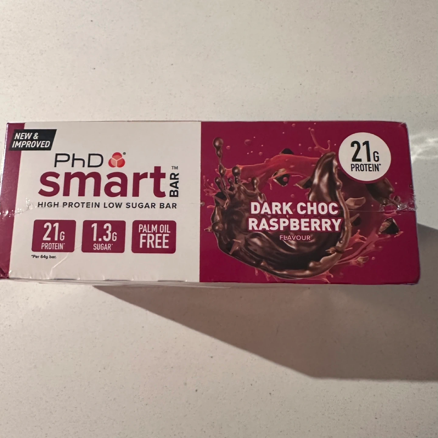113Selling a box of PhD Smart Bars in Dark Chocolate Raspberry flavour. Each box contains 12 bars, each 64g. Best before May 2026. Great high protein, low sugar snack!