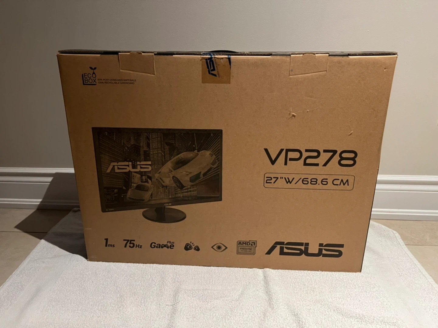 Assus monitor Vp 278 QG 27 inch wide 68.6 cm 1920 x 1080 2 hdmi ports 1 Ms trace free 75 hz refresh rate Game plus monitor Enhance colour and performance AMD adaptive sync free sync Stereo speakers built in for full sound with out speakers Easy eye care technology built in Includes cable