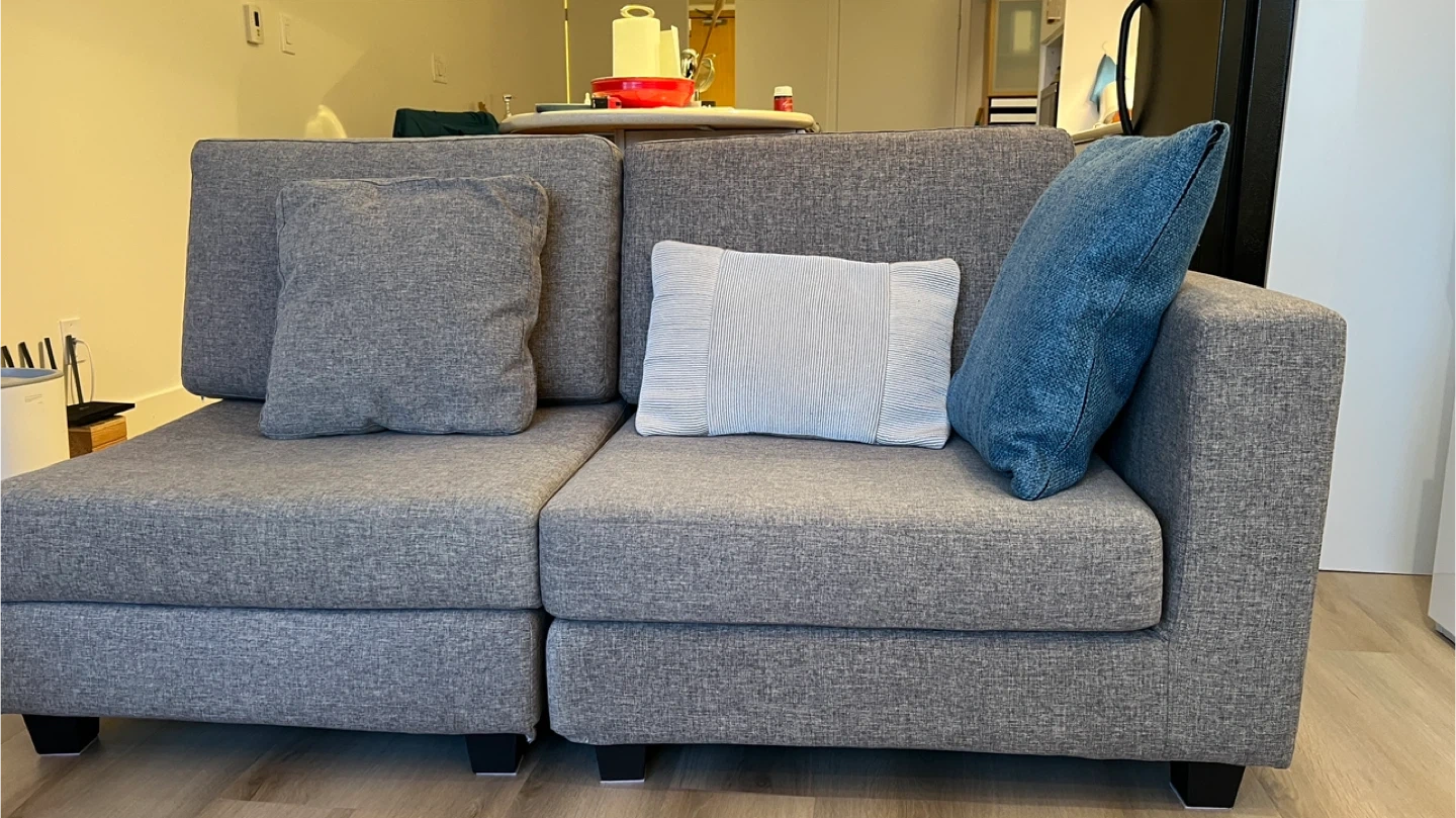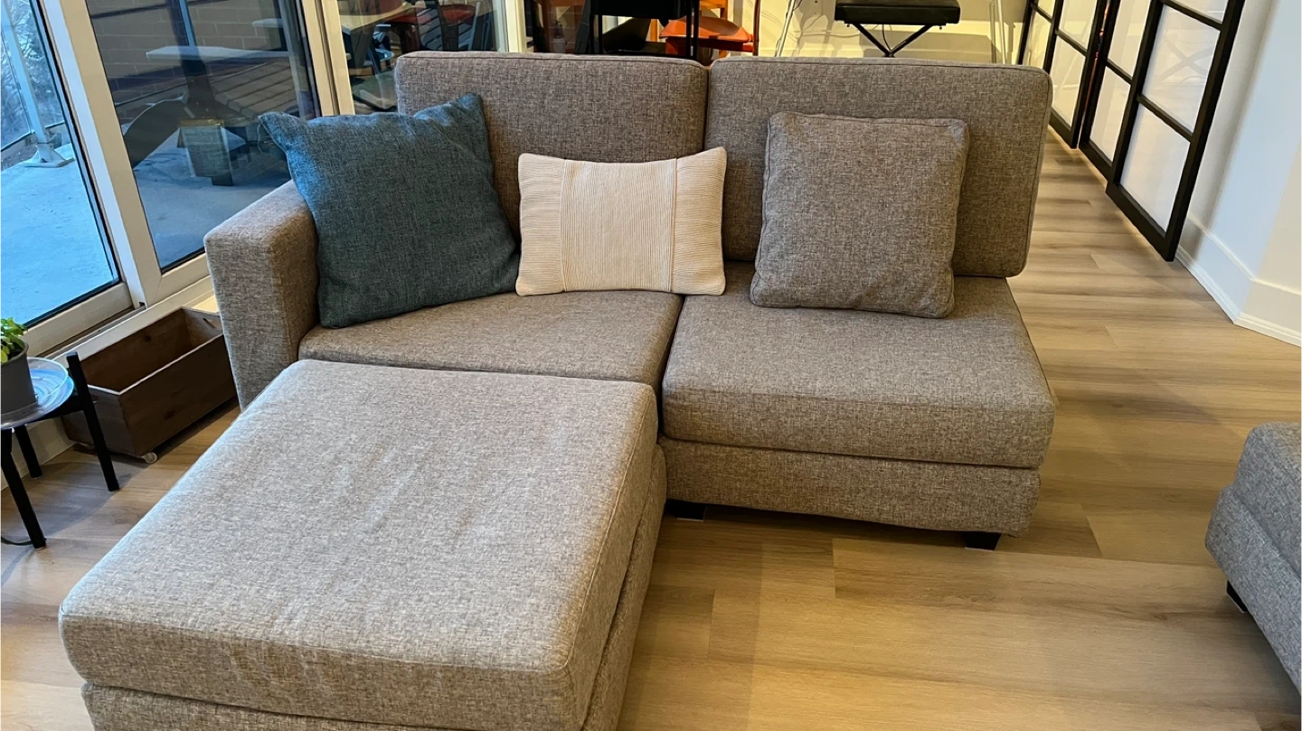 Selling a comfy beige-grey (bark-coloured) modular sectional sofa, complete with an ottoman. It's in good shape and ready to add some cozy vibes to your place! The sectional is super versatile, so you can arrange it however you like. Perfect for lounging! If you are looking for a dark brown sofa instead, this sofa comes with extra covers in that colour. One sectional sofa. Two colour choices.
