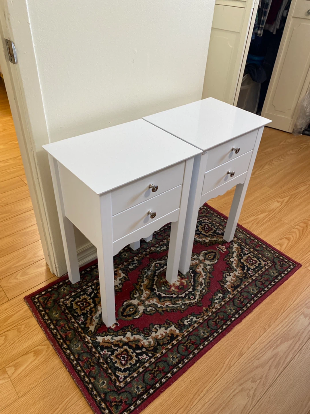 Pair of White Nightstands with Drawers