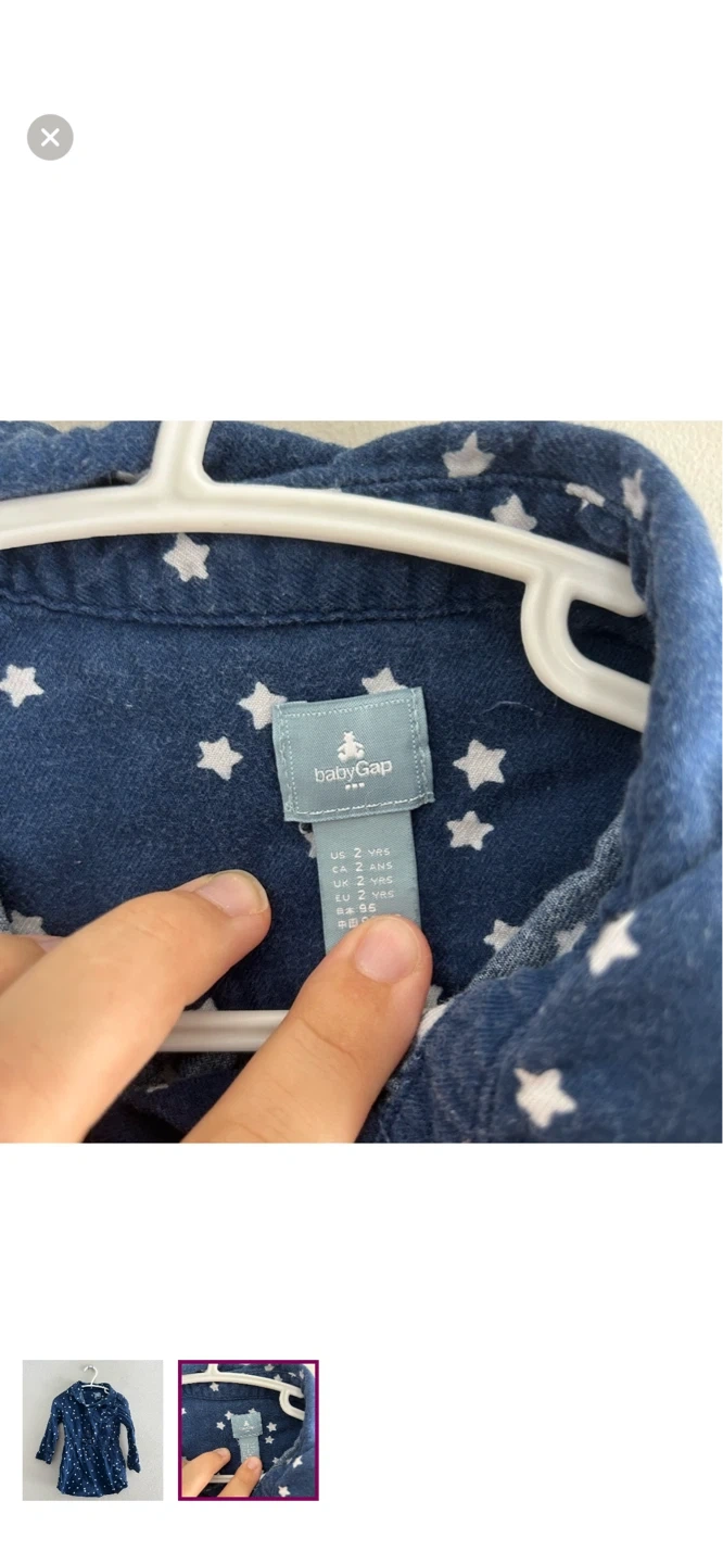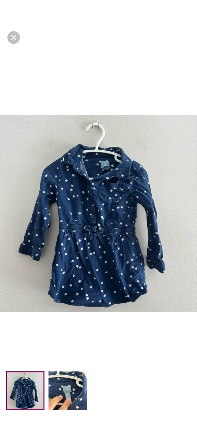 Gap brand. Long sleeve button down tunic. Navy with white star print. Size 2t. Brand new condition, light wash wear $3