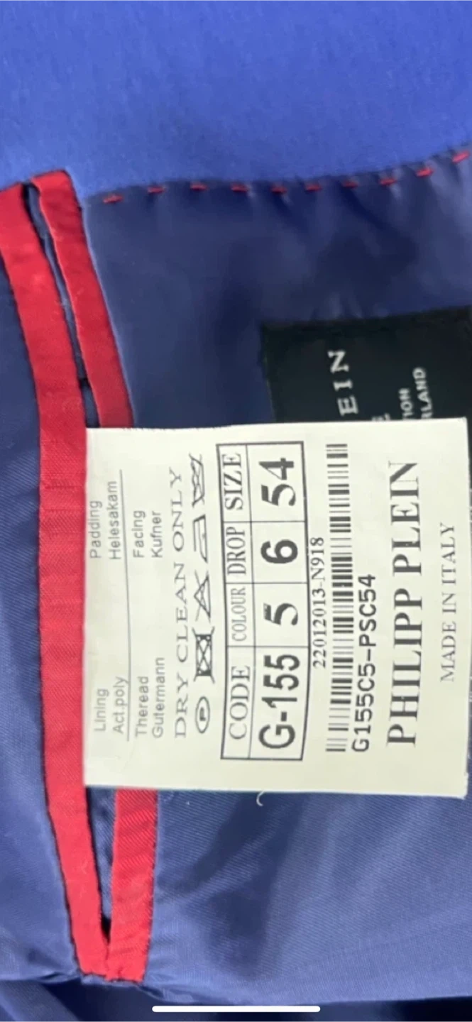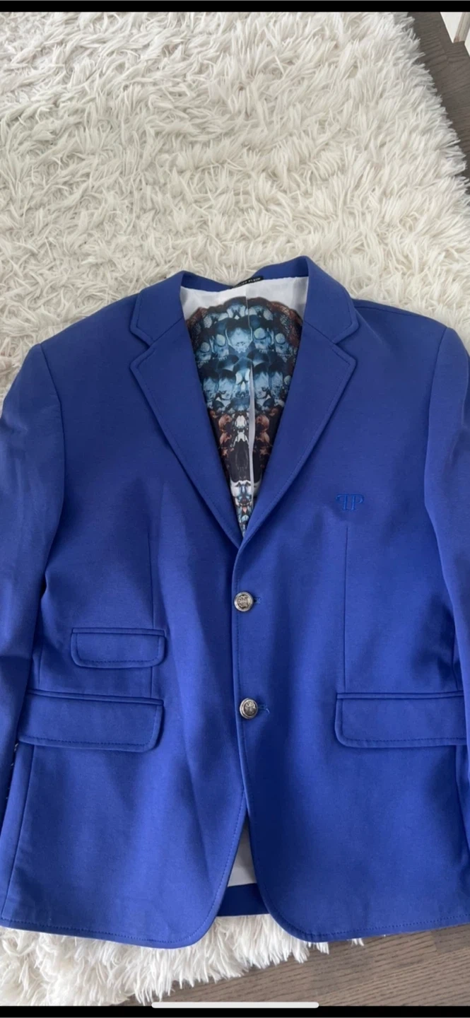 29Selling a stylish Philipp Plein blazer in a vibrant blue color. The size is 54. It's been well-cared for and is ready for a new home! Perfect for adding a pop of color to your wardrobe