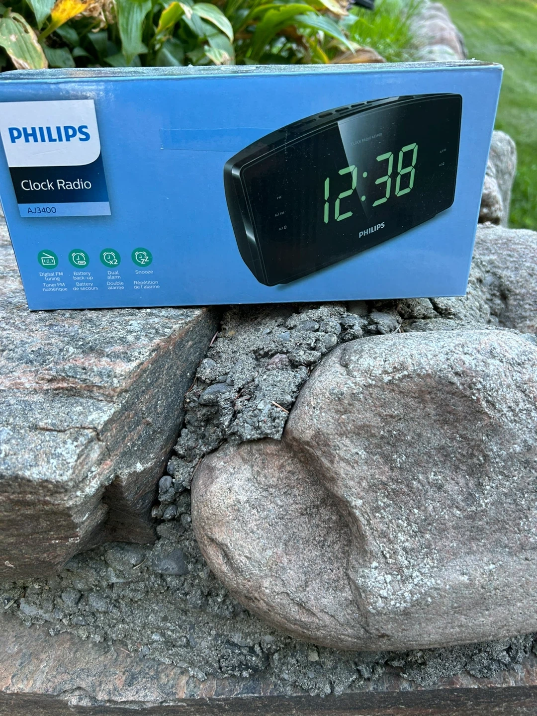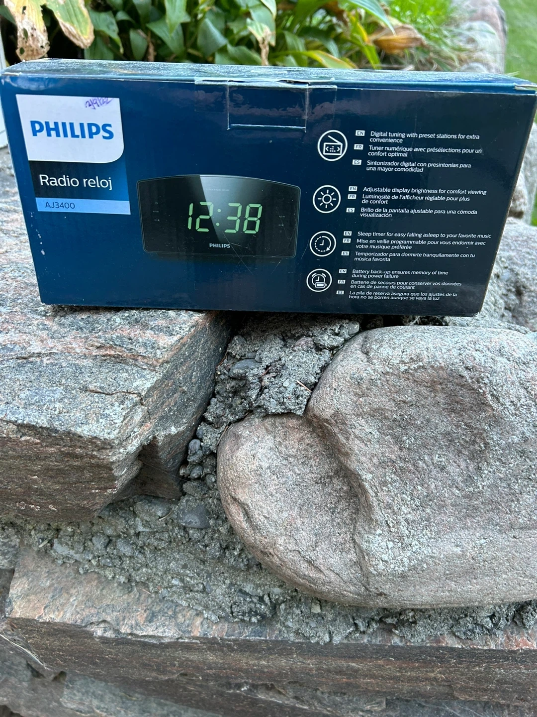 Selling a Philips AJ3400 clock radio. It features digital tuning with preset stations for extra convenience. The display brightness is adjustable for comfortable viewing. It also has a sleep timer for easy falling asleep to your favourite music. The battery back-up ensures memory of time setting in case of power failure. Box included