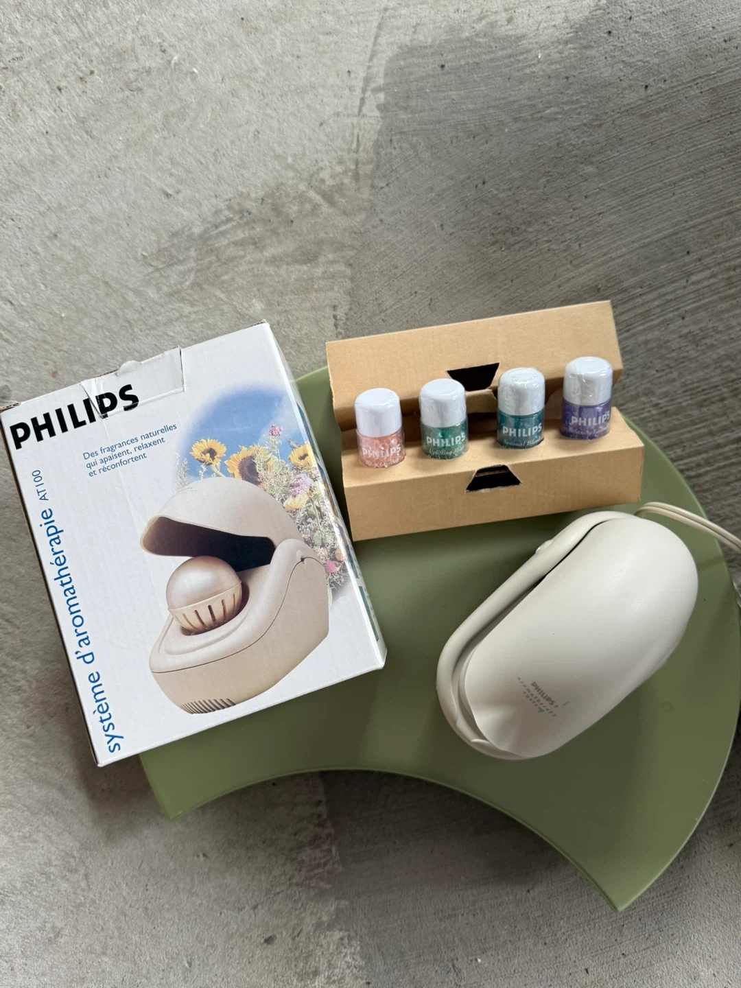 12Philips aromatherapy system AT100. It comes with the original box and a set of four fragrance oils.